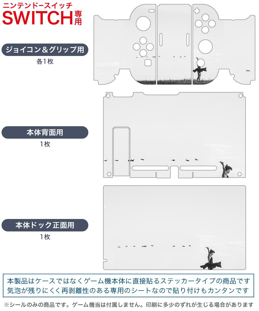 igsticker Nintendo Switch 用 デザインスキンシール 任天堂 ニンテンドー スイッチ 専用 本体ドック Joy-Con Joycon ジョイコン 専用 ゲーム機 カバー アクセサリー フィルム ステッカー 023190 モノクロ 人物 バレエ