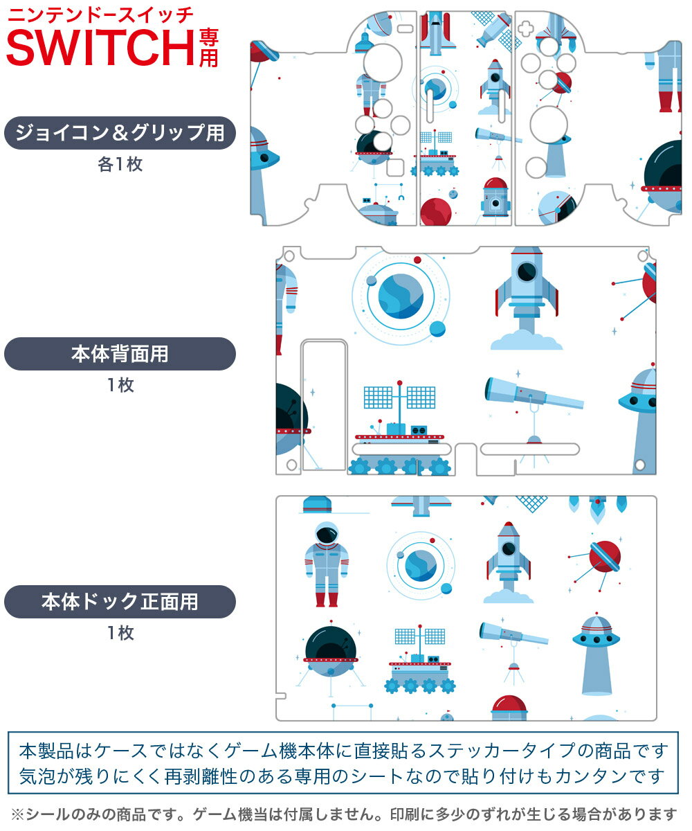 igsticker Nintendo Switch 用 デザインスキンシール 任天堂 ニンテンドー スイッチ 専用 本体ドック Joy-Con Joycon ジョイコン 専用 ゲーム機 カバー アクセサリー フィルム ステッカー 013164 宇宙 ロケット