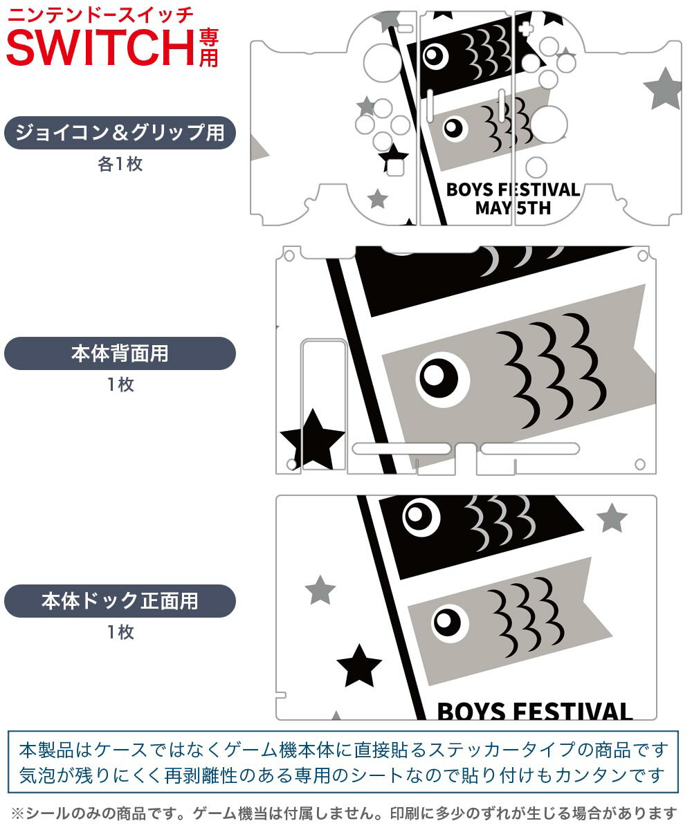 igsticker Nintendo Switch 用 デザインスキンシール 任天堂 ニンテンドー スイッチ 専用 本体ドック Joy-Con Joycon ジョイコン 専用 ゲーム機 カバー アクセサリー フィルム ステッカー 017652 子供の日 こいのぼり 鯉のぼり モノトーン