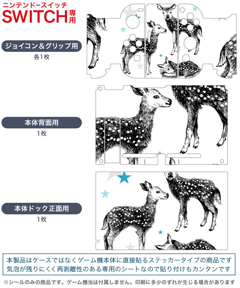 igsticker Nintendo Switch 用 デザインスキンシール 任天堂 ニンテンドー スイッチ 専用 本体ドック Joy-Con Joycon ジョイコン 専用 ゲーム機 カバー アクセサリー フィルム ステッカー 014453 バンビ 星 動物