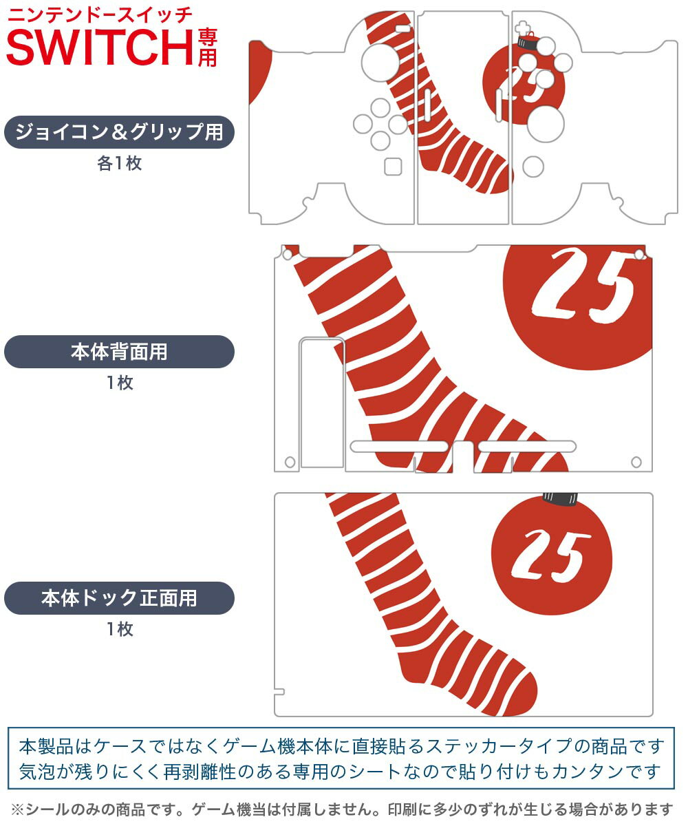 igsticker Nintendo Switch 用 デザインスキンシール 任天堂 ニンテンドー スイッチ 専用 本体ドック Joy-Con Joycon ジョイコン 専用 ゲーム機 カバー アクセサリー フィルム ステッカー 017663 クリスマス クリスマス 靴下 25日
