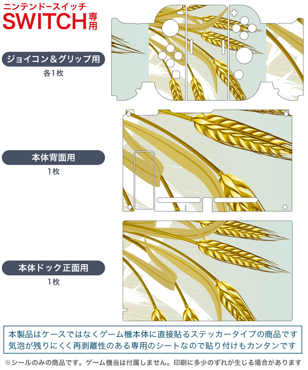 igsticker Nintendo Switch 用 デザインスキンシール 任天堂 ニンテンドー スイッチ 専用 本体ドック Joy-Con Joycon ジョイコン 専用 ゲーム機 カバー アクセサリー フィルム ステッカー 001295 麦 秋 植物