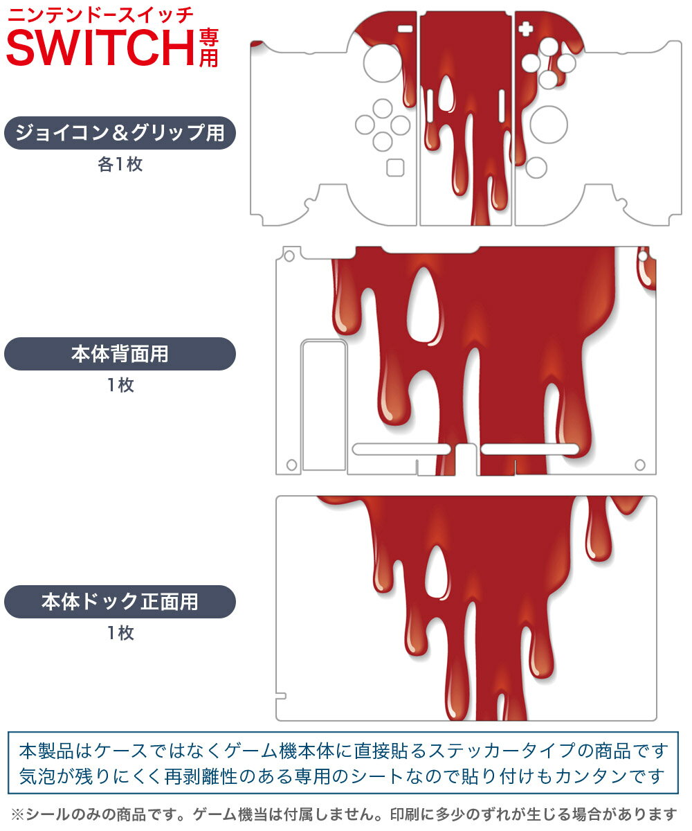 igsticker Nintendo Switch 用 デザインスキンシール 任天堂 ニンテンドー スイッチ 専用 本体ドック Joy-Con Joycon ジョイコン 専用 ゲーム機 カバー アクセサリー フィルム ステッカー 001952 ペイント 絵の具 赤
