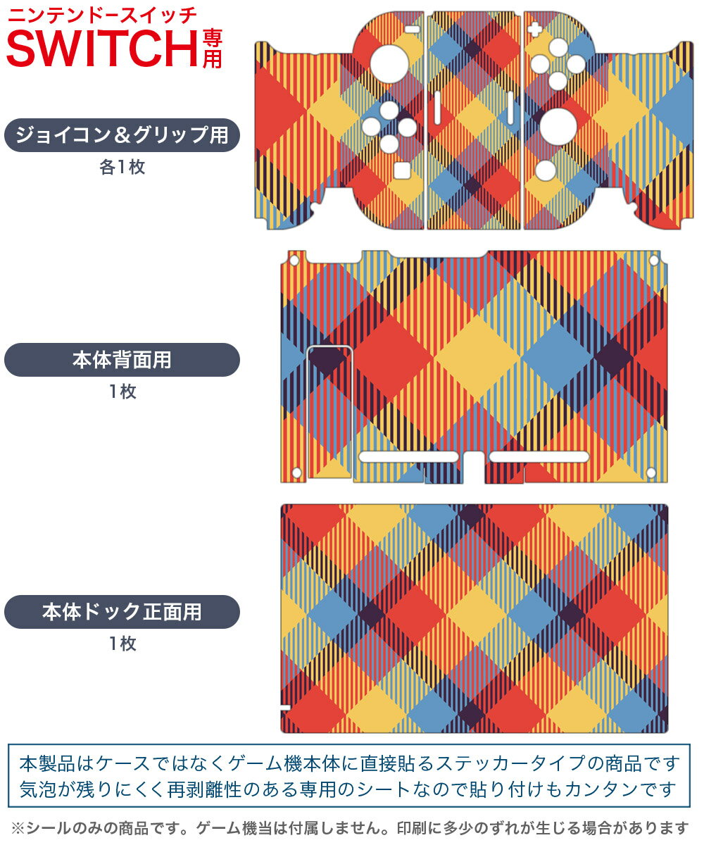 igsticker Nintendo Switch 用 デザインスキンシール 任天堂 ニンテンドー スイッチ 専用 本体ドック Joy-Con Joycon ジョイコン 専用 ゲーム機 カバー アクセサリー フィルム ステッカー 007434 チェック 模様 カラフル