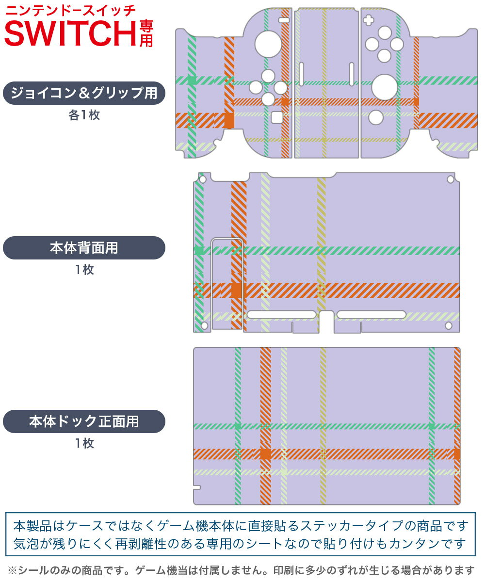 igsticker Nintendo Switch 用 デザインスキンシール 任天堂 ニンテンドー スイッチ 専用 本体ドック Joy-Con Joycon ジョイコン 専用 ゲーム機 カバー アクセサリー フィルム ステッカー 004187 チェック 紫