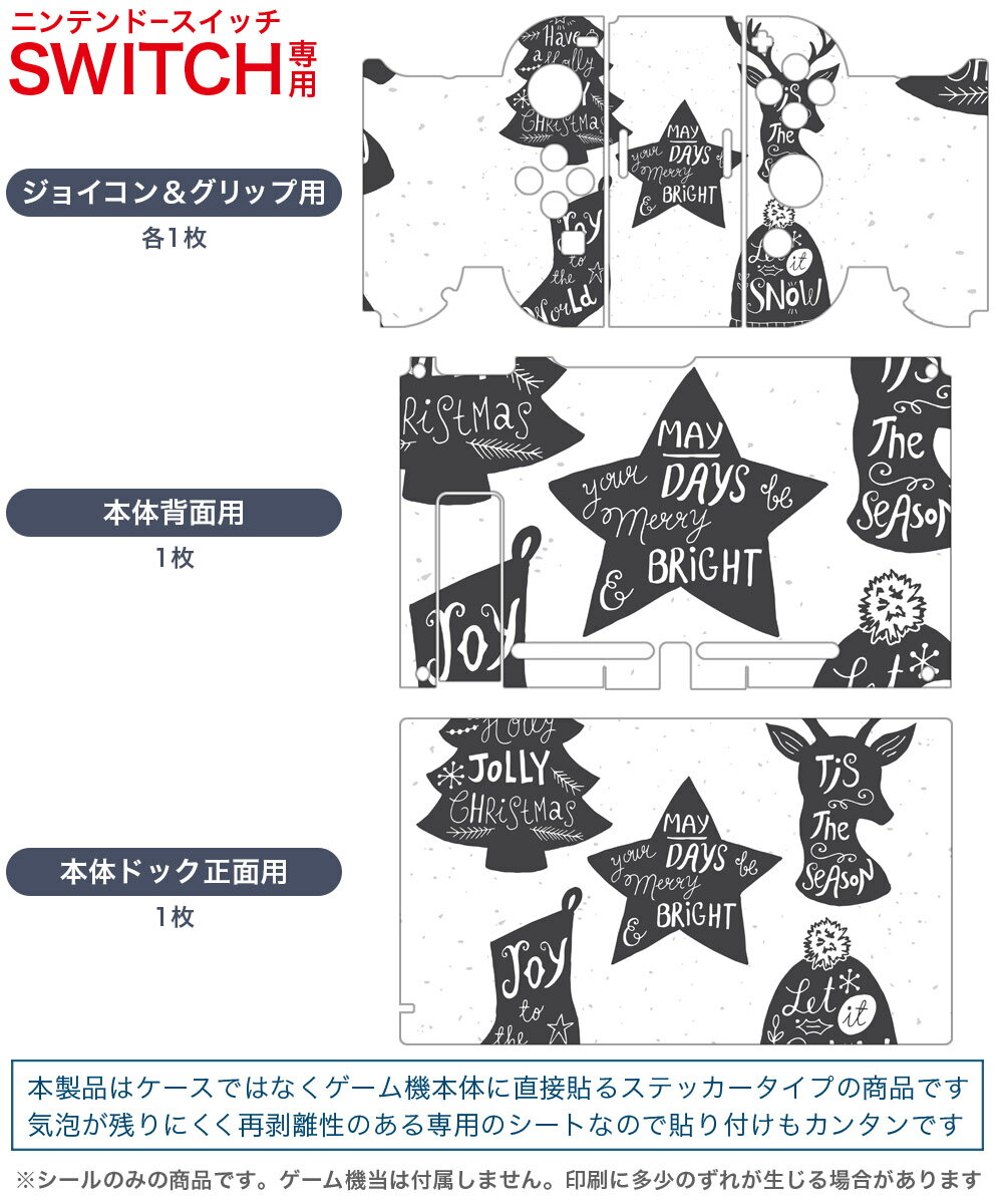 igsticker Nintendo Switch 用 デザインスキンシール 任天堂 ニンテンドー スイッチ 専用 本体ドック Joy-Con Joycon ジョイコン 専用 ゲーム機 カバー アクセサリー フィルム ステッカー 010016 クリスマス ツリー 英語