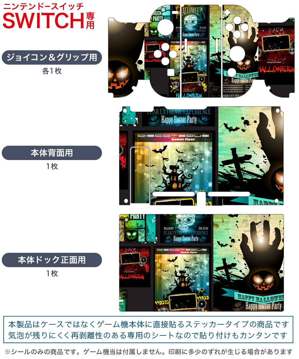 igsticker Nintendo Switch 用 デザインスキンシール 任天堂 ニンテンドー スイッチ 専用 本体ドック Joy-Con Joycon ジョイコン 専用 ゲーム機 カバー アクセサリー フィルム ステッカー 007495 ハロウィン 骸骨 ドクロ カボチャ