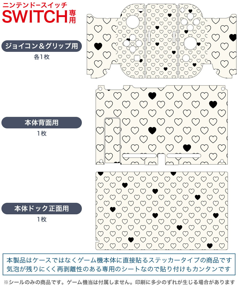 igsticker Nintendo Switch 用 デザインスキンシール 任天堂 ニンテンドー スイッチ 専用 本体ドック Joy-Con Joycon ジョイコン 専用 ゲーム機 カバー アクセサリー フィルム ステッカー 007511 白黒 ハート 模様