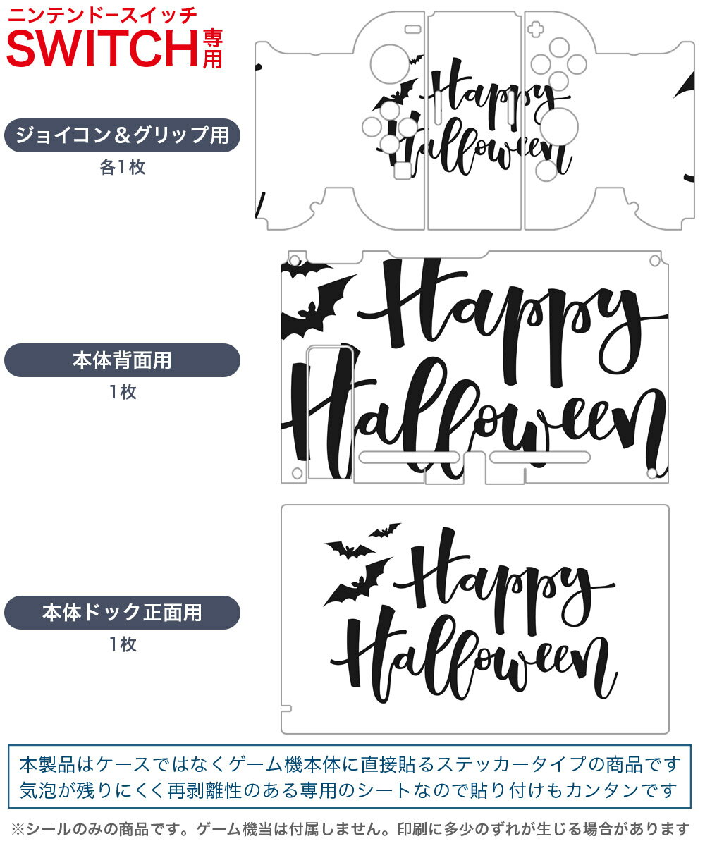 igsticker Nintendo Switch 用 デザインスキンシール 任天堂 ニンテンドー スイッチ 専用 本体ドック Joy-Con Joycon ジョイコン 専用 ゲーム機 カバー アクセサリー フィルム ステッカー 015374 ハロウィン モノクロ 英字