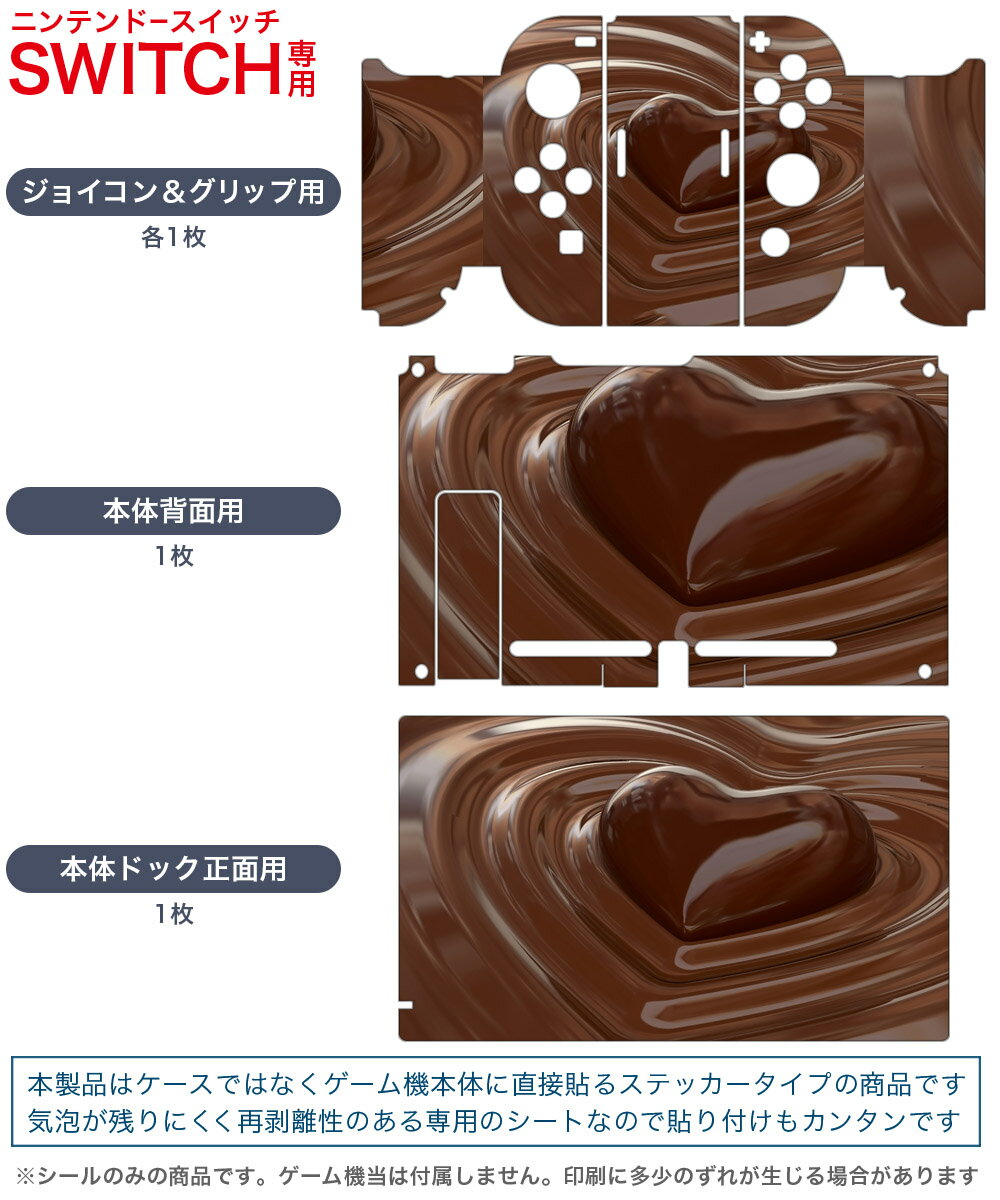 igsticker Nintendo Switch 用 デザインスキンシール 任天堂 ニンテンドー スイッチ 専用 本体ドック Joy-Con Joycon ジョイコン 専用 ゲーム機 カバー アクセサリー フィルム ステッカー 000815 チョコレート ハート