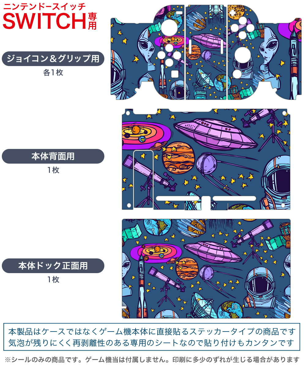 igsticker Nintendo Switch 用 デザインスキンシール 任天堂 ニンテンドー スイッチ 専用 本体ドック Joy-Con Joycon ジョイコン 専用 ゲーム機 カバー アクセサリー フィルム ステッカー 008789 青 ブルー 宇宙 イラスト