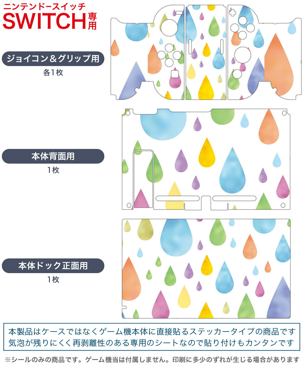 igsticker Nintendo Switch 用 デザインスキンシール 任天堂 ニンテンドー スイッチ 専用 本体ドック Joy-Con Joycon ジョイコン 専用 ゲーム機 カバー アクセサリー フィルム ステッカー 006840 雨 雫