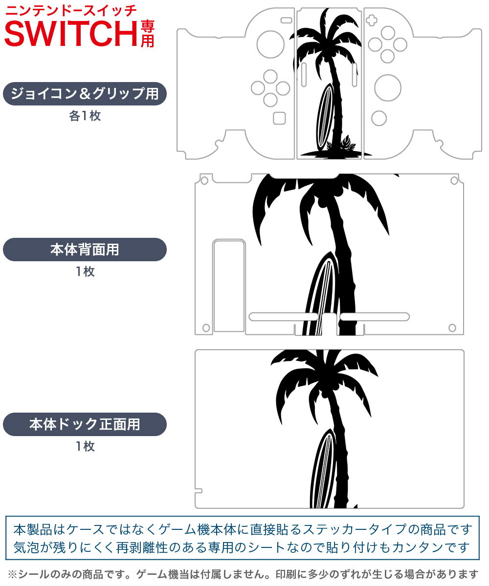 igsticker Nintendo Switch 用 デザインスキンシール 任天堂 ニンテンドー スイッチ 専用 本体ドック Joy-Con Joycon ジョイコン 専用 ゲーム機 カバー アクセサリー フィルム ステッカー 013962 ヤシの木 サーフィン 海