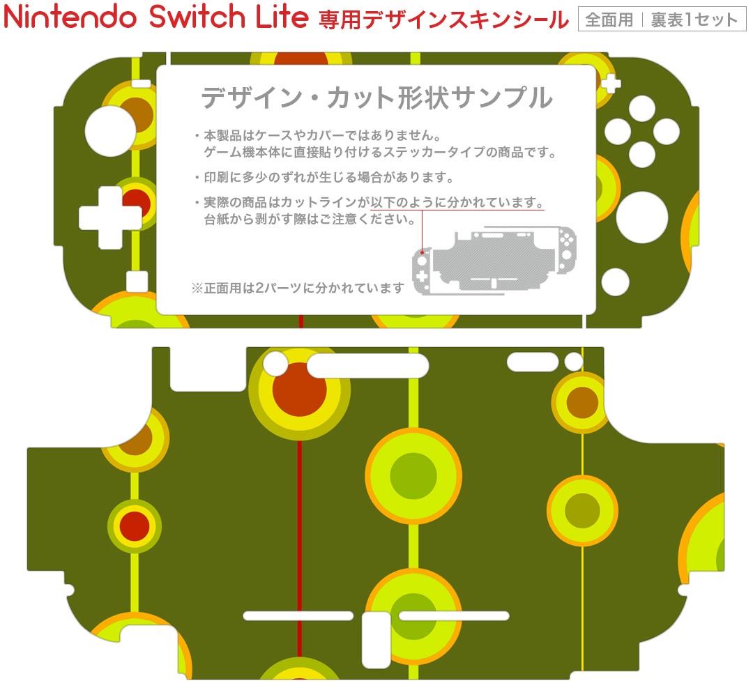 製品名 Nintendo Switch Lite専用 デザインスキンシール セット内容 Nintendo Switch Lite本体用スキンシール(裏表)各1枚 ※液晶側シールは2パーツに分かれていますニンテンドースイッチライト専用です。据え置き機のSwitch本体やJoyコンには対応していません。 商品特徴 3M社製の再剥離性シートを素材に採用し、細かな位置調整がしやすく貼り直しが容易です。また、エアフリーでもありますので気泡が簡単に逃げるので、キレイに貼ることができます。専用の業務プリンターを使い、商品画像と遜色のない美しい印刷仕上がり。 注意事項 画像はサンプルですので、ご覧の環境によっては多少色味に違いを感じる場合がございます。 イメージと違った、モニターと色味が異なるという理由での交換や返金はご対応出来かねます。スキンシールのみの販売で、ニンテンドースイッチ本体などは付属しません。シワができた場合、ドライヤーなどで軽く温め、外側に向けてシワを伸ばすように貼ってください。初回貼付時の位置調整や貼り直しは可能ですが、しっかりと押し付けて接着させた後の再剥離、再利用は保証しておりません。また接着部に油分や汚れが付着しますと角の部分は剥がれやすくなりますので、貼付時はあまり触れないようにご注意ください。無地のセミグロスシートにデザインをプリントした商品で、デコなどの加工はございません。 凹凸や光沢があるように見えたり布地や金属を素材にしたように見える商品もありますが、デザインの図版によるものです。印刷時に微妙な画像のズレが生じる場合がございます。ご注文後に1点1点制作する受注生産品の為、不良品以外のご返品や交換は固くお断りします。 商品発送 完全受注生産のハンドメイド商品となりますので、既製品と比べて発送までお時間を頂いています。 基本的に決済確認後2?3営業日、最大で10営業日での発送となります。繁忙期や休業日明けの場合はさらに時間がかかる場合があります。 その際には別途メールにてご連絡致します。メール便の場合、発送日から到着までに2?4日ほどかかる場合が多く、紛失などの保障もご対応できかねます。あらかじめご了承下さい。