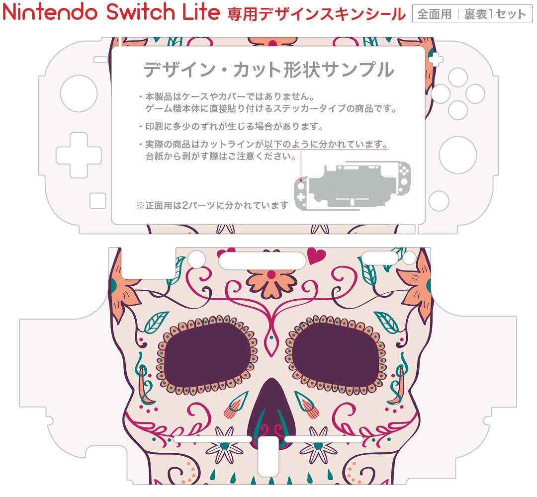 製品名 Nintendo Switch Lite専用 デザインスキンシール セット内容 Nintendo Switch Lite本体用スキンシール(裏表)各1枚 ※液晶側シールは2パーツに分かれていますニンテンドースイッチライト専用です。据え置き機のSwitch本体やJoyコンには対応していません。 商品特徴 3M社製の再剥離性シートを素材に採用し、細かな位置調整がしやすく貼り直しが容易です。また、エアフリーでもありますので気泡が簡単に逃げるので、キレイに貼ることができます。専用の業務プリンターを使い、商品画像と遜色のない美しい印刷仕上がり。 注意事項 画像はサンプルですので、ご覧の環境によっては多少色味に違いを感じる場合がございます。 イメージと違った、モニターと色味が異なるという理由での交換や返金はご対応出来かねます。スキンシールのみの販売で、ニンテンドースイッチ本体などは付属しません。シワができた場合、ドライヤーなどで軽く温め、外側に向けてシワを伸ばすように貼ってください。初回貼付時の位置調整や貼り直しは可能ですが、しっかりと押し付けて接着させた後の再剥離、再利用は保証しておりません。また接着部に油分や汚れが付着しますと角の部分は剥がれやすくなりますので、貼付時はあまり触れないようにご注意ください。無地のセミグロスシートにデザインをプリントした商品で、デコなどの加工はございません。 凹凸や光沢があるように見えたり布地や金属を素材にしたように見える商品もありますが、デザインの図版によるものです。印刷時に微妙な画像のズレが生じる場合がございます。ご注文後に1点1点制作する受注生産品の為、不良品以外のご返品や交換は固くお断りします。 商品発送 完全受注生産のハンドメイド商品となりますので、既製品と比べて発送までお時間を頂いています。 基本的に決済確認後2?3営業日、最大で10営業日での発送となります。繁忙期や休業日明けの場合はさらに時間がかかる場合があります。 その際には別途メールにてご連絡致します。メール便の場合、発送日から到着までに2?4日ほどかかる場合が多く、紛失などの保障もご対応できかねます。あらかじめご了承下さい。