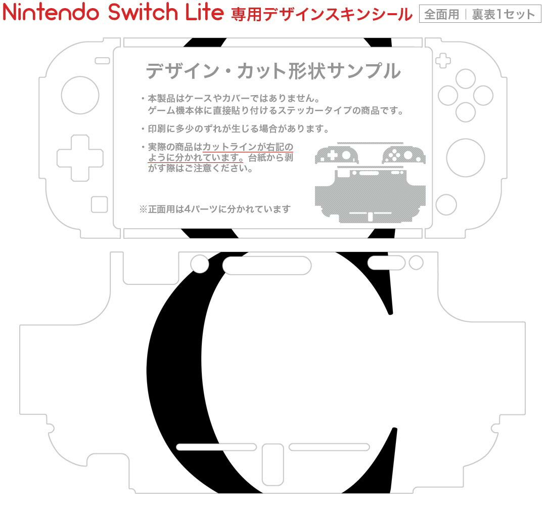 製品名 Nintendo Switch Lite専用 デザインスキンシール セット内容 Nintendo Switch Lite本体用スキンシール(裏表)各1枚 ※液晶側シールは2パーツに分かれていますニンテンドースイッチライト専用です。据え置き機のSwitch本体やJoyコンには対応していません。 商品特徴 3M社製の再剥離性シートを素材に採用し、細かな位置調整がしやすく貼り直しが容易です。また、エアフリーでもありますので気泡が簡単に逃げるので、キレイに貼ることができます。専用の業務プリンターを使い、商品画像と遜色のない美しい印刷仕上がり。 注意事項 画像はサンプルですので、ご覧の環境によっては多少色味に違いを感じる場合がございます。 イメージと違った、モニターと色味が異なるという理由での交換や返金はご対応出来かねます。スキンシールのみの販売で、ニンテンドースイッチ本体などは付属しません。シワができた場合、ドライヤーなどで軽く温め、外側に向けてシワを伸ばすように貼ってください。初回貼付時の位置調整や貼り直しは可能ですが、しっかりと押し付けて接着させた後の再剥離、再利用は保証しておりません。また接着部に油分や汚れが付着しますと角の部分は剥がれやすくなりますので、貼付時はあまり触れないようにご注意ください。無地のセミグロスシートにデザインをプリントした商品で、デコなどの加工はございません。 凹凸や光沢があるように見えたり布地や金属を素材にしたように見える商品もありますが、デザインの図版によるものです。印刷時に微妙な画像のズレが生じる場合がございます。ご注文後に1点1点制作する受注生産品の為、不良品以外のご返品や交換は固くお断りします。 商品発送 完全受注生産のハンドメイド商品となりますので、既製品と比べて発送までお時間を頂いています。 基本的に決済確認後2?3営業日、最大で10営業日での発送となります。繁忙期や休業日明けの場合はさらに時間がかかる場合があります。 その際には別途メールにてご連絡致します。メール便の場合、発送日から到着までに2?4日ほどかかる場合が多く、紛失などの保障もご対応できかねます。あらかじめご了承下さい。