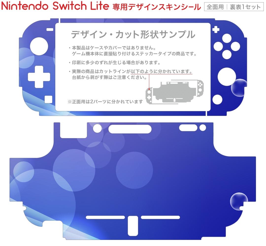 製品名 Nintendo Switch Lite専用 デザインスキンシール セット内容 Nintendo Switch Lite本体用スキンシール(裏表)各1枚 ※液晶側シールは2パーツに分かれていますニンテンドースイッチライト専用です。据え置き機のSwitch本体やJoyコンには対応していません。 商品特徴 3M社製の再剥離性シートを素材に採用し、細かな位置調整がしやすく貼り直しが容易です。また、エアフリーでもありますので気泡が簡単に逃げるので、キレイに貼ることができます。専用の業務プリンターを使い、商品画像と遜色のない美しい印刷仕上がり。 注意事項 画像はサンプルですので、ご覧の環境によっては多少色味に違いを感じる場合がございます。 イメージと違った、モニターと色味が異なるという理由での交換や返金はご対応出来かねます。スキンシールのみの販売で、ニンテンドースイッチ本体などは付属しません。シワができた場合、ドライヤーなどで軽く温め、外側に向けてシワを伸ばすように貼ってください。初回貼付時の位置調整や貼り直しは可能ですが、しっかりと押し付けて接着させた後の再剥離、再利用は保証しておりません。また接着部に油分や汚れが付着しますと角の部分は剥がれやすくなりますので、貼付時はあまり触れないようにご注意ください。無地のセミグロスシートにデザインをプリントした商品で、デコなどの加工はございません。 凹凸や光沢があるように見えたり布地や金属を素材にしたように見える商品もありますが、デザインの図版によるものです。印刷時に微妙な画像のズレが生じる場合がございます。ご注文後に1点1点制作する受注生産品の為、不良品以外のご返品や交換は固くお断りします。 商品発送 完全受注生産のハンドメイド商品となりますので、既製品と比べて発送までお時間を頂いています。 基本的に決済確認後2?3営業日、最大で10営業日での発送となります。繁忙期や休業日明けの場合はさらに時間がかかる場合があります。 その際には別途メールにてご連絡致します。メール便の場合、発送日から到着までに2?4日ほどかかる場合が多く、紛失などの保障もご対応できかねます。あらかじめご了承下さい。