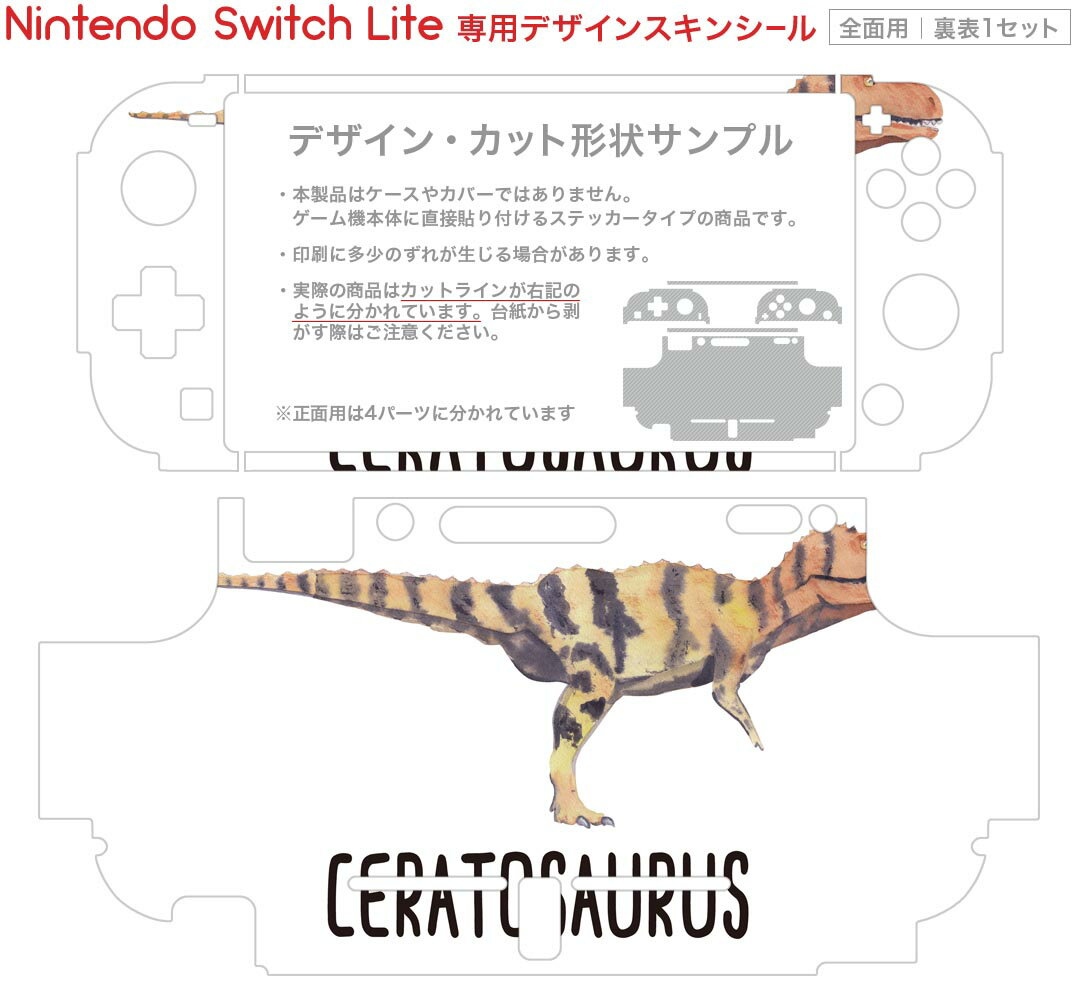 igsticker Nintendo Switch Lite 専用 デザインスキンシール 全面 ニンテンドー スイッチ ライト 専用 ゲーム機 カバー アクセサリー フィルム ステッカー エアフリー 019808 恐竜 恐竜 Ceratosaurus ケラトサウルス