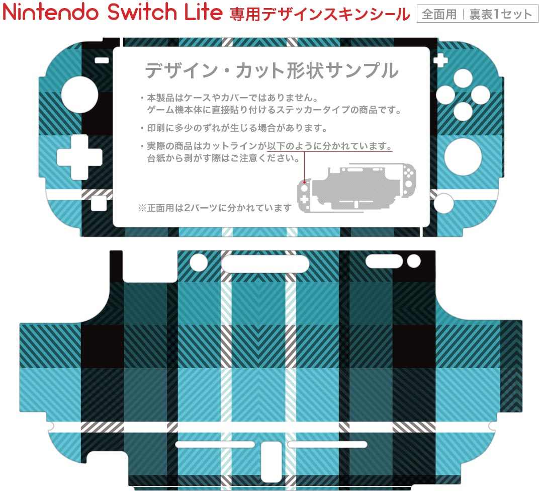 製品名 Nintendo Switch Lite専用 デザインスキンシール セット内容 Nintendo Switch Lite本体用スキンシール(裏表)各1枚 ※液晶側シールは2パーツに分かれていますニンテンドースイッチライト専用です。据え置き機のSwitch本体やJoyコンには対応していません。 商品特徴 3M社製の再剥離性シートを素材に採用し、細かな位置調整がしやすく貼り直しが容易です。また、エアフリーでもありますので気泡が簡単に逃げるので、キレイに貼ることができます。専用の業務プリンターを使い、商品画像と遜色のない美しい印刷仕上がり。 注意事項 画像はサンプルですので、ご覧の環境によっては多少色味に違いを感じる場合がございます。 イメージと違った、モニターと色味が異なるという理由での交換や返金はご対応出来かねます。スキンシールのみの販売で、ニンテンドースイッチ本体などは付属しません。シワができた場合、ドライヤーなどで軽く温め、外側に向けてシワを伸ばすように貼ってください。初回貼付時の位置調整や貼り直しは可能ですが、しっかりと押し付けて接着させた後の再剥離、再利用は保証しておりません。また接着部に油分や汚れが付着しますと角の部分は剥がれやすくなりますので、貼付時はあまり触れないようにご注意ください。無地のセミグロスシートにデザインをプリントした商品で、デコなどの加工はございません。 凹凸や光沢があるように見えたり布地や金属を素材にしたように見える商品もありますが、デザインの図版によるものです。印刷時に微妙な画像のズレが生じる場合がございます。ご注文後に1点1点制作する受注生産品の為、不良品以外のご返品や交換は固くお断りします。 商品発送 完全受注生産のハンドメイド商品となりますので、既製品と比べて発送までお時間を頂いています。 基本的に決済確認後2?3営業日、最大で10営業日での発送となります。繁忙期や休業日明けの場合はさらに時間がかかる場合があります。 その際には別途メールにてご連絡致します。メール便の場合、発送日から到着までに2?4日ほどかかる場合が多く、紛失などの保障もご対応できかねます。あらかじめご了承下さい。