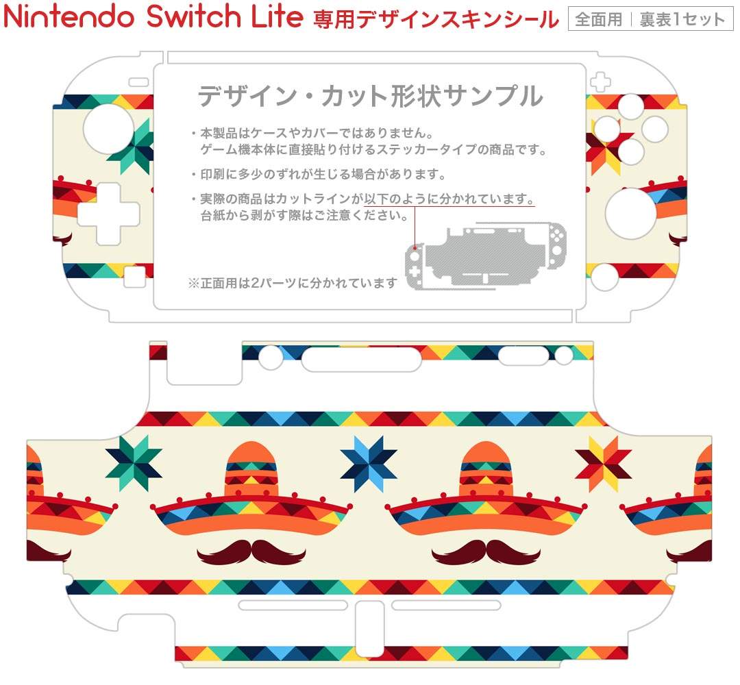 製品名 Nintendo Switch Lite専用 デザインスキンシール セット内容 Nintendo Switch Lite本体用スキンシール(裏表)各1枚 ※液晶側シールは2パーツに分かれていますニンテンドースイッチライト専用です。据え置き機のSwitch本体やJoyコンには対応していません。 商品特徴 3M社製の再剥離性シートを素材に採用し、細かな位置調整がしやすく貼り直しが容易です。また、エアフリーでもありますので気泡が簡単に逃げるので、キレイに貼ることができます。専用の業務プリンターを使い、商品画像と遜色のない美しい印刷仕上がり。 注意事項 画像はサンプルですので、ご覧の環境によっては多少色味に違いを感じる場合がございます。 イメージと違った、モニターと色味が異なるという理由での交換や返金はご対応出来かねます。スキンシールのみの販売で、ニンテンドースイッチ本体などは付属しません。シワができた場合、ドライヤーなどで軽く温め、外側に向けてシワを伸ばすように貼ってください。初回貼付時の位置調整や貼り直しは可能ですが、しっかりと押し付けて接着させた後の再剥離、再利用は保証しておりません。また接着部に油分や汚れが付着しますと角の部分は剥がれやすくなりますので、貼付時はあまり触れないようにご注意ください。無地のセミグロスシートにデザインをプリントした商品で、デコなどの加工はございません。 凹凸や光沢があるように見えたり布地や金属を素材にしたように見える商品もありますが、デザインの図版によるものです。印刷時に微妙な画像のズレが生じる場合がございます。ご注文後に1点1点制作する受注生産品の為、不良品以外のご返品や交換は固くお断りします。 商品発送 完全受注生産のハンドメイド商品となりますので、既製品と比べて発送までお時間を頂いています。 基本的に決済確認後2?3営業日、最大で10営業日での発送となります。繁忙期や休業日明けの場合はさらに時間がかかる場合があります。 その際には別途メールにてご連絡致します。メール便の場合、発送日から到着までに2?4日ほどかかる場合が多く、紛失などの保障もご対応できかねます。あらかじめご了承下さい。
