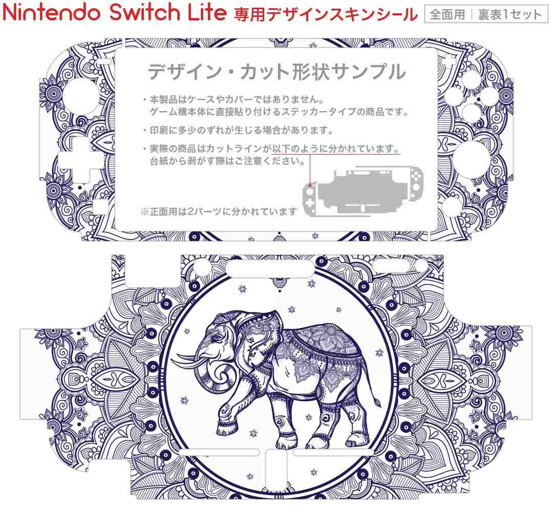 igsticker Nintendo Switch Lite 専用 デザインスキンシール 全面 ニンテンドー スイッチ ライト 専用 ゲーム機 カバー アクセサリー フィルム ステッカー エアフリー 010054 アジアン ゾウ 青