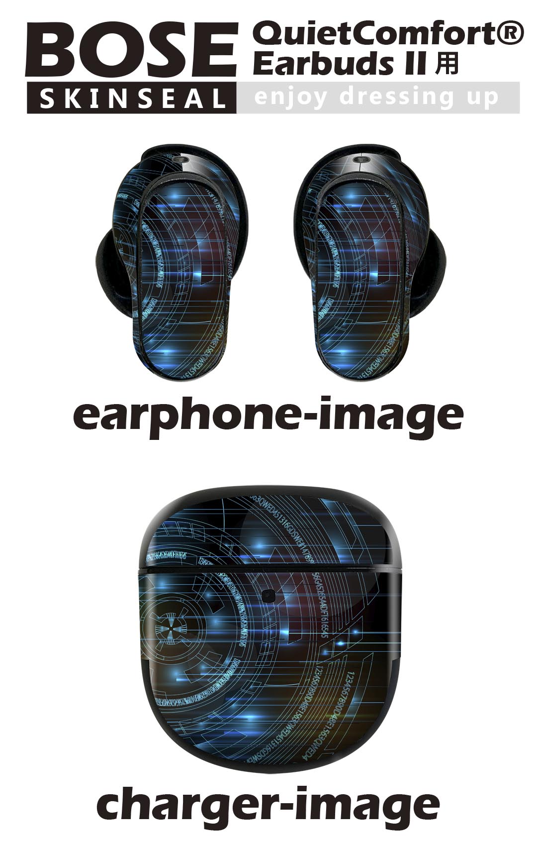 Bose QuietComfort Earbuds II 用 スキンシール ボーズ イヤバッズ2 用 ステッカー 本体3セット ケース1セット 保護 フィルム デコ 青 ブルー デジタル 006015