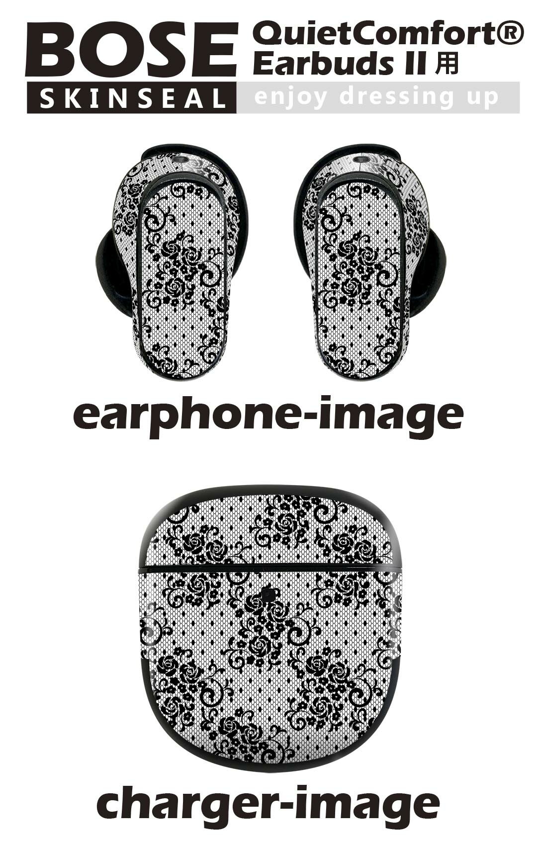Bose QuietComfort Earbuds II 用 スキンシール ボーズ イヤバッズ2 用 ステッカー 本体3セット ケース1セット 保護 フィルム デコ バラ 花 ドット 012398