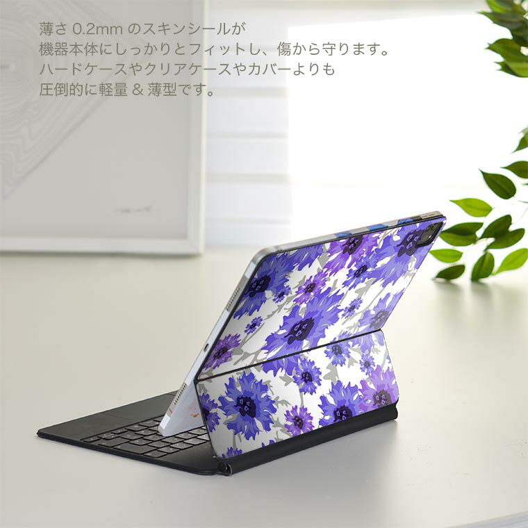 Magic Keyboard 用 スキンシール 11インチ iPad Pro用 第1-4世代 iPad Air 第4-5世代 対応 全面スキンシール フル 前面 背面 保護シール 人気 012736 花 花柄 青