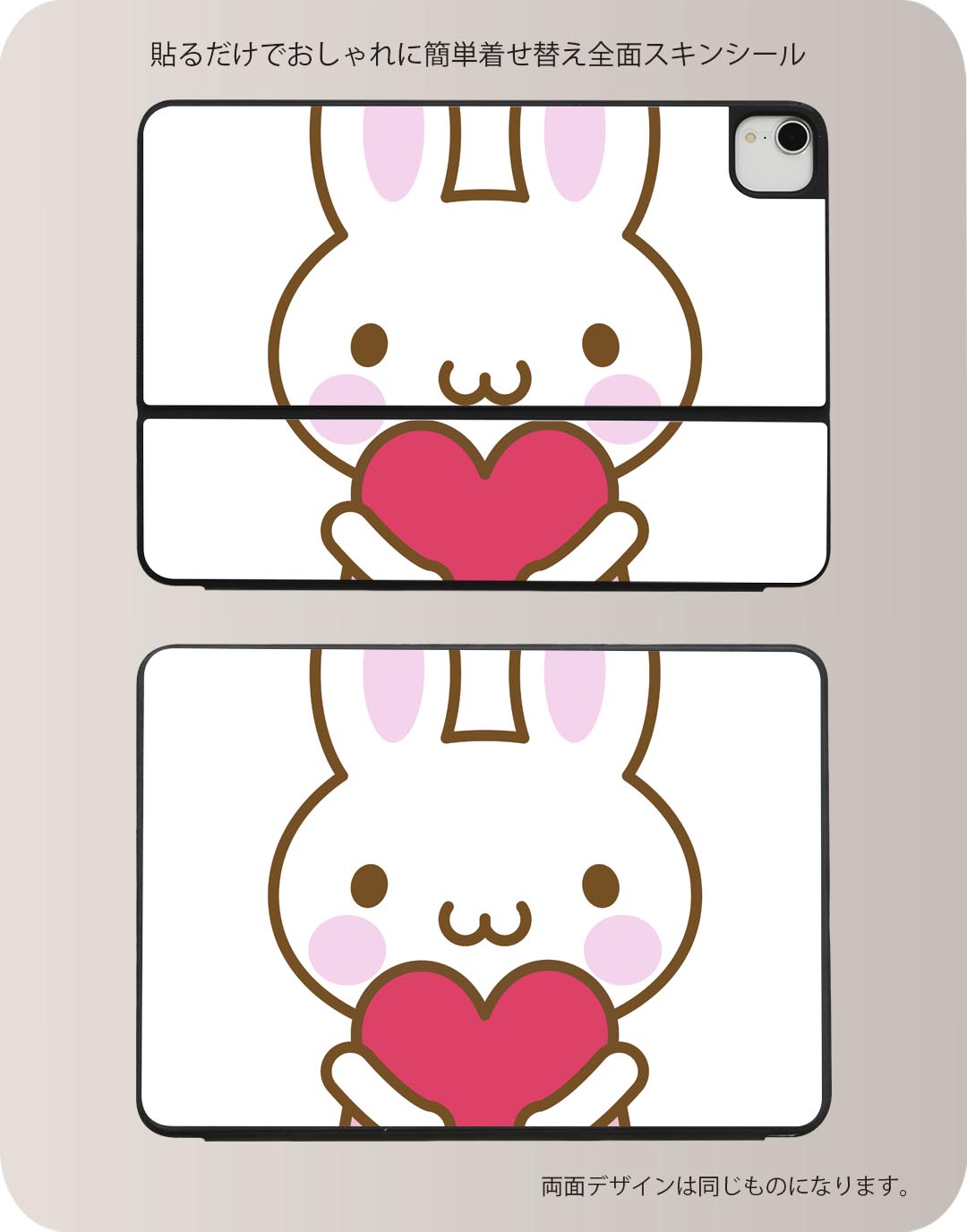 Smart Keyboard Folio 用 スキンシール 11インチ iPad Pro用 第1-4世代 iPad Air 第4-5世代 対応 全面スキンシール フル 前面 背面 保護シール 人気 005060 うさぎ イラスト ハート