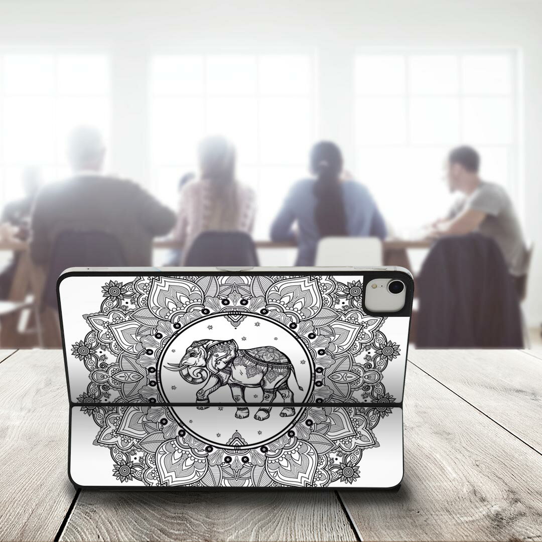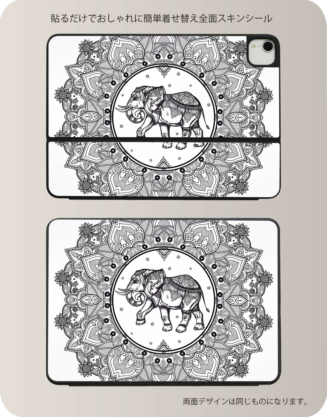 Smart Keyboard Folio 用 スキンシール 11インチ iPad Pro用 第1-4世代 iPad Air 第4-5世代 対応 全面スキンシール フル 前面 背面 保護シール 人気 010056 アジアン ゾウ 黒