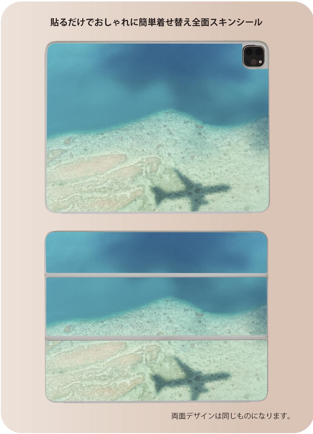 iPad Smart Folio 用 12.9インチ iPad Pro(第4世代、第5世代、第6世代)対応 apple アップル アイパッド 全面スキンシール フル 前面 背面 保護シール 人気 014374 飛行機 海 シルエット