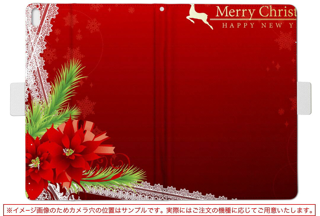 aiwa tab AB8 用 タブレット ケース JA3-TBA0801 / TBA0802 8インチ Mサイズ 手帳型 タブレットケース カバー レザー フリップ ダイアリー 二つ折り 革 008464 赤 レッド クリスマス 花