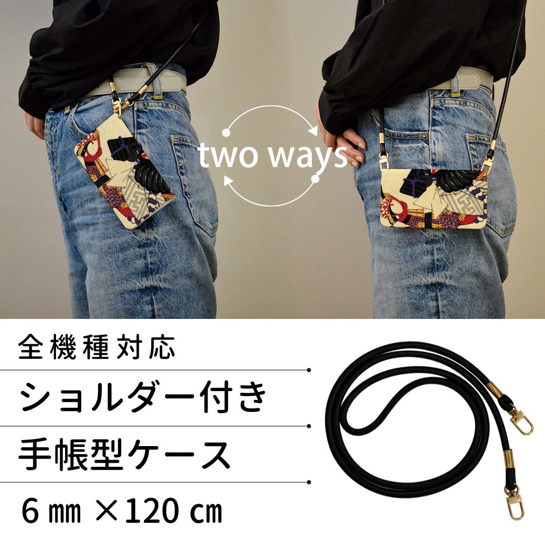 商品特徴・ショルダー付き手帳型スマホケース・シームレスな全面デザイン(内側は落ち着いたオフホワイト)・外側は高品質の人工革を使用・内側にはスマホを装着するケースが付属・機種専用のカメラホール仕様でケースを装着したままの撮影が可能・ワンセグや動画の視聴に便利な横置きスタンド機能・ICカードなどを2枚まで収納できるカードスロット付き・マグネットフリップで開け閉めカンタン注意事項商品画像はサンプルイメージですので、ご覧の環境によっては多少色味に違いを感じる場合がございます。イメージと違った、モニターと色味が異なるという理由での交換や返金はご対応出来かねます。 ショルダーとカバーのみの販売で本体は付属しません。ワイヤレス充電対応機種についてはお使いの機器や環境により反応しない場合があります。その場合お手数ですがケースから外してお使い下さい。卓上ホルダ及びワイヤレスでの充電は保障の対象外となります。こちらは無地のレザーにデザインをプリントした商品で、デコなどの加工はございません。凹凸や光沢があるように見えたり布地や金属を素材にしたように見える商品もありますが、デザインの図版によるものです。撮影時にカバーが映り込む恐れがあるため、カメラ用の穴は若干大きめに開けています。カメラ穴の位置にわずかなズレが生じる場合がございます。また印刷時に微妙な画像のズレが生じる場合がございます。ご注文後に1点1点制作する受注生産品のため、不良品以外のご返品や交換は固くお断り致します。機種の選択間違いも保証対象外となりますため、ご注文の際は必ず機種をご確認下さい。発送について完全受注生産のハンドメイド商品となりますので、既製品と比べて発送までお時間を頂いています。 基本的に決済確認後、通常で3営業日程度、最大で10営業日程度での発送となります。繁忙期や休業日明けの場合はさらに時間がかかる場合があります。 その際には別途メールにてご連絡致します。メール便の場合、発送日から到着までに2?4日ほどかかる場合が多く、紛失などの保障もご対応できかねます。あらかじめご了承下さい。