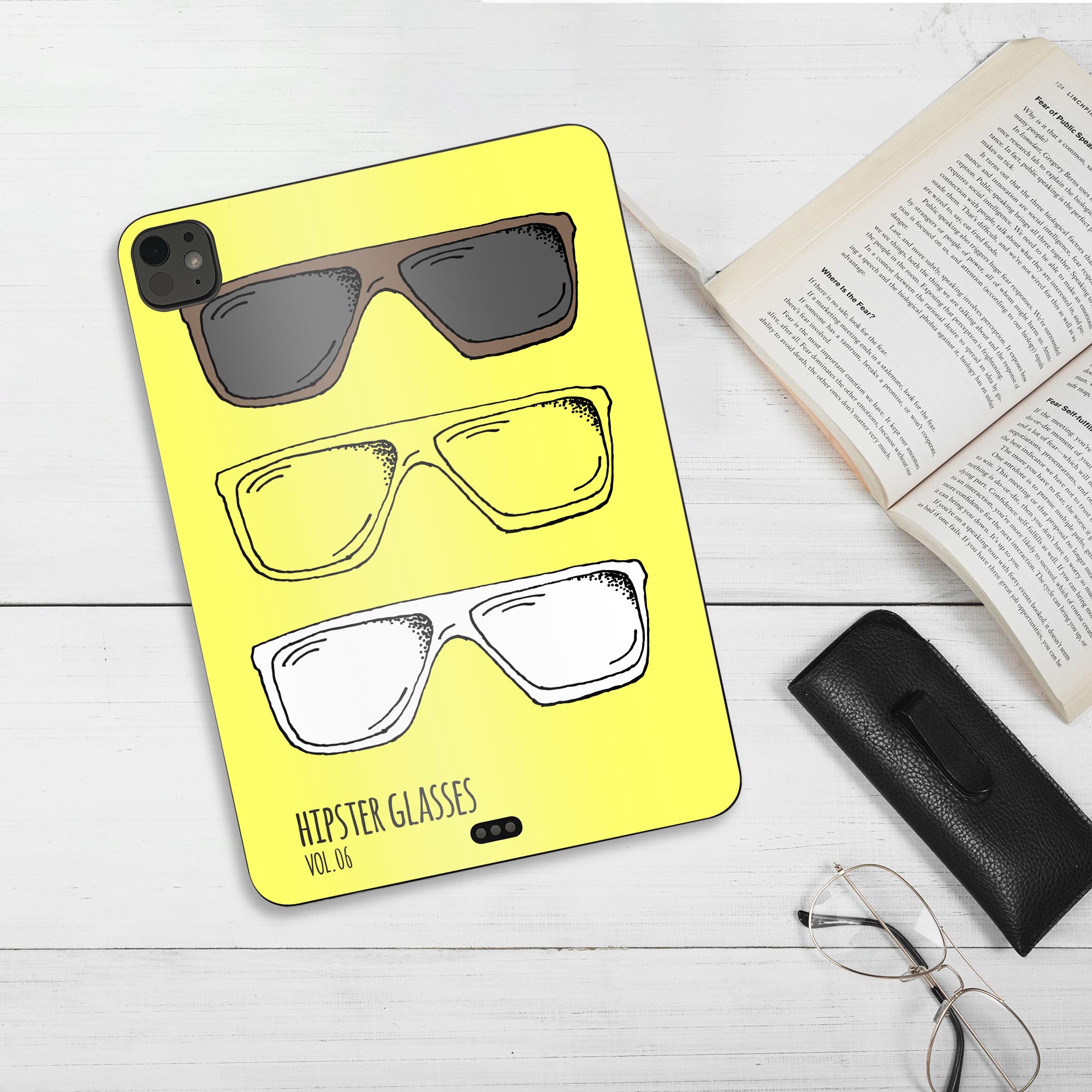 iPadPro 11(M4) iPadPro 13(M4) 2024年発売 第5世代 用 スキンシール 11インチ 13インチ ipad pro 対応 ノートパソコン カバー ケース フィルム ステッカー アクセサリー 保護 サングラス 黄色 英字 012769