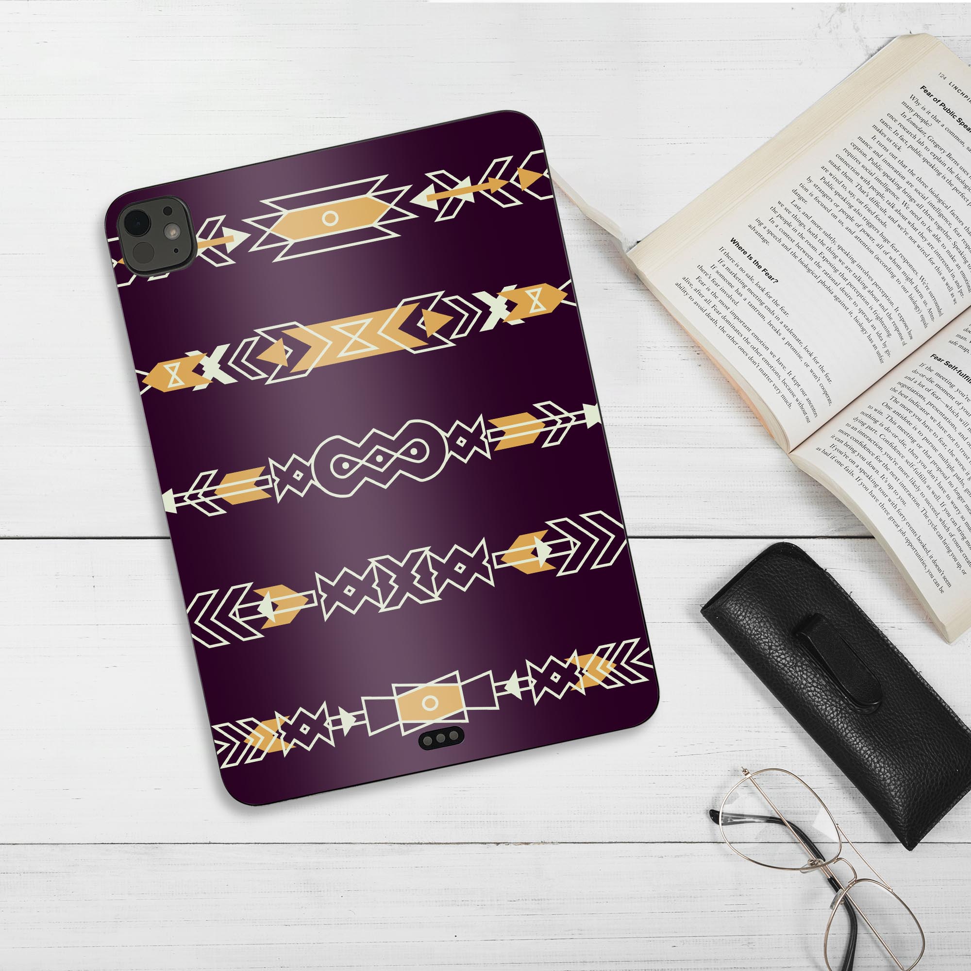 iPadPro 11(M4) iPadPro 13(M4) 2024年発売 第5世代 用 スキンシール 11インチ 13インチ ipad pro 対応 ノートパソコン カバー ケース フィルム ステッカー アクセサリー 保護 ネイティブ柄 オレンジ 010756