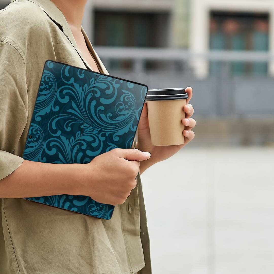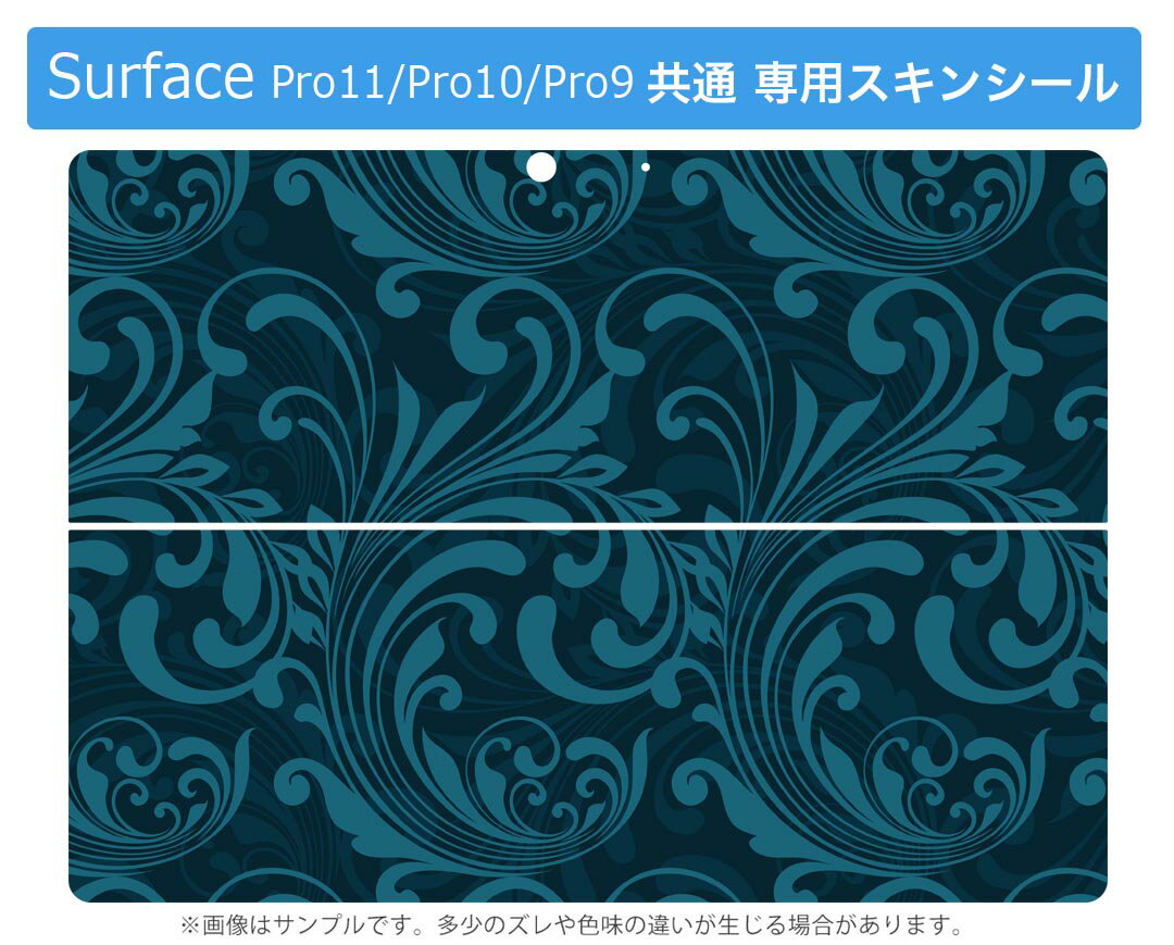 Surface Pro11(2024) / Pro10(for Business) / Pro9(2022) 共通対応 背面 保護 デザイン スキンシール Pro8/ProX 各種対応 008239 青 ブルー ブラック 黒 植物 模様