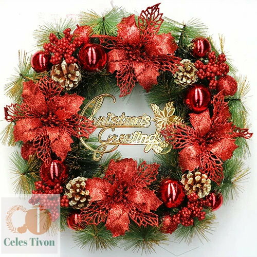 クリスマスリース 直径約40cm リース 玄関リース 北欧 おしゃれ ナチュラル クリスマス 部屋 手作り 装飾 優雅 飾り 飾り付け 可愛い ドア 壁掛け インテリア 記念日 お祝い お歳暮 大きい ディスプレイ ギフト プレゼント Xmas