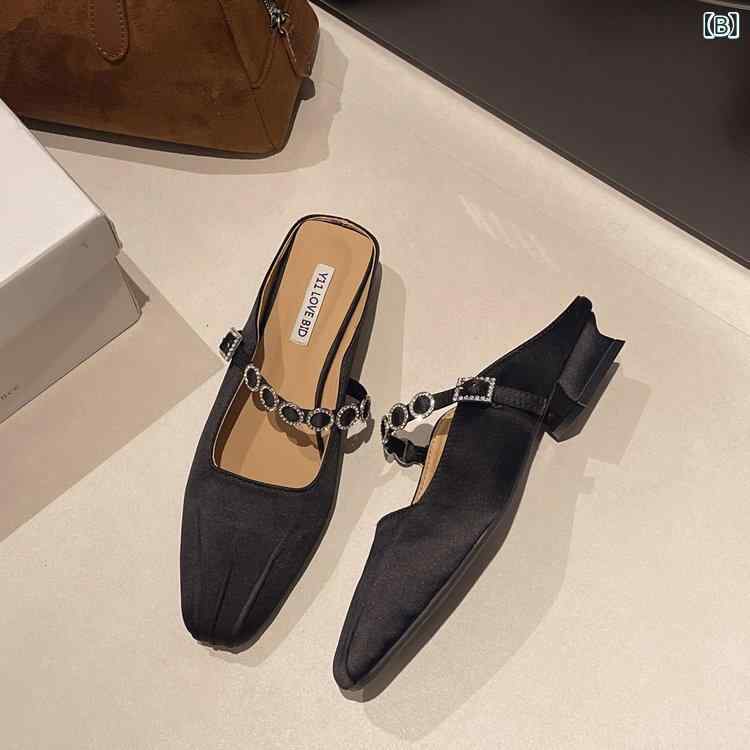 サンダル レディース 春夏 厚底メアリージェーン ラインストーン つま先カバー ハーフタイプ フランス風 フェアリー クールシューズ 屋外用 軽量 吸湿速乾