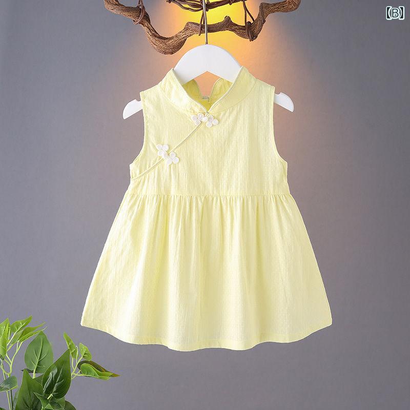 ワンピース 女の子 ベビー 春夏 チャイナドレス 綿素材 民族風 背心スカート 0-3歳用 軽やか 通気性 かわいい デザイン