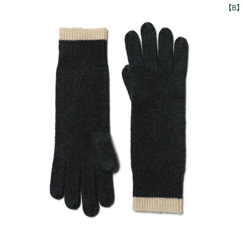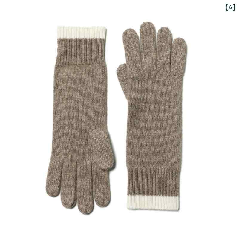 手袋 レディース 秋冬 ニット 長丈 異色 カラーブロック 縁 純羊毛 ウール 暖か素材 防寒 保温性 柔らかい 肌に優しい 伸縮性 高い 快適 着用感 日常 ファッション アイテム