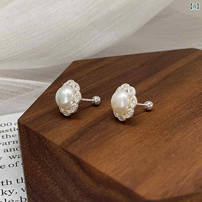 ピアス レディース 純銀 パール ジルコニア インセット レトロ スイート エレガント スクリュー式 イヤリング 女性用 優しい雰囲気 かわいい デザイン アクセサリー 日常使い ギフト向き