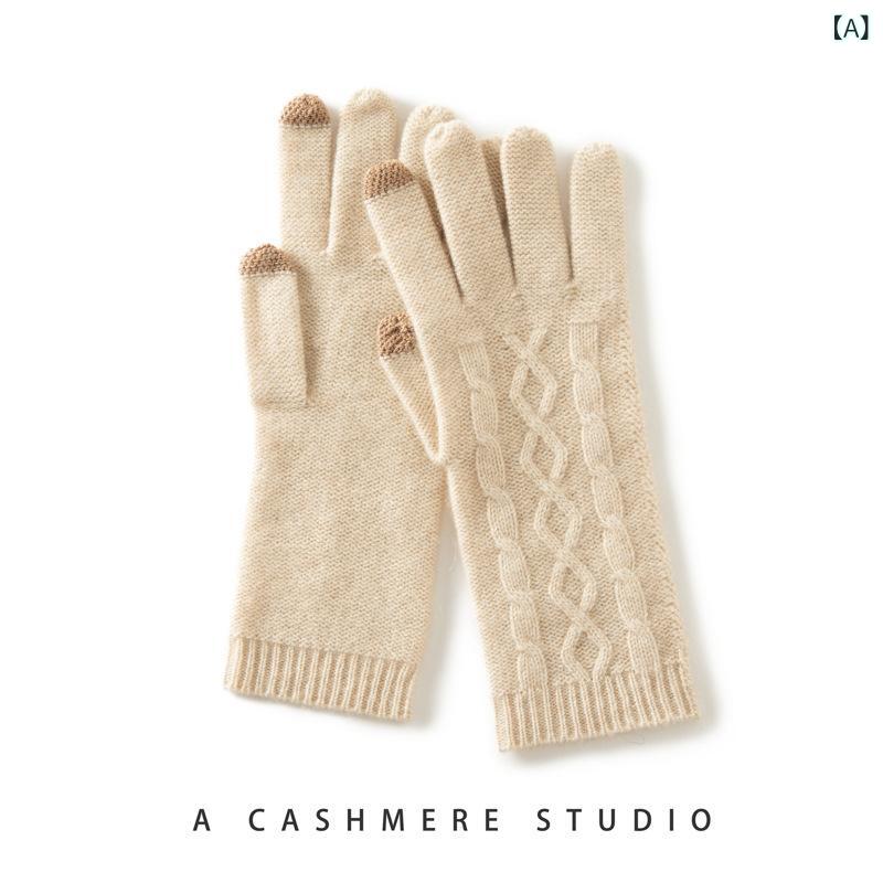 手袋 レディース 秋冬 カシミヤ ウール ニット ケーブル編み 単色 ロング 高級感 暖か 防寒 ファッション サイクリング グローブ アウトドア 日常使い ソフトタッチ