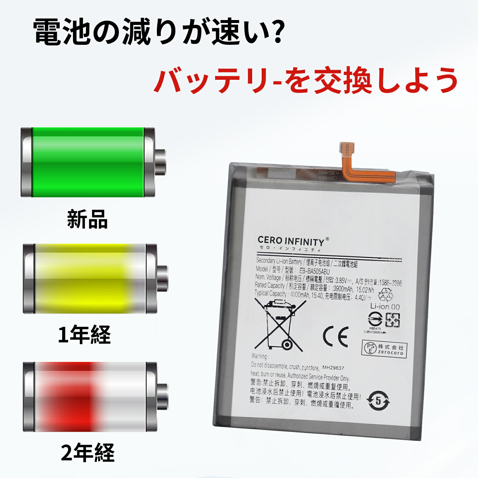 ブランド Samsung 電圧 3.85V 容量 3900mAh 純正品型番 対応機種 4 Galaxy A50 Galaxy A505F SM-A505F A505FN/DS A505GN/DS A505W Galaxy A30s Galaxy A30 EB-BA505ABN EB-BA505ABU メーカー型番 INMPSAMGALA50BK-AAC-YGIRZE SM-A505F この商品は互換用バッテリーです ■重要注意事項■ 1. 製品仕様は改良のため予告なく変更する場合がございます 2. 実際の駆動時間は使用条件により異なります 3. 正規品とは外装デザインが異なる場合があります 注文前の重要確認事項 ▲個人輸入商品の利用制限 ■注文者本人による「使用/消費」のみ許可 ■第三者への譲渡・転売は電気用品安全法第29条違反 商品仕様について ◆同一性能商品の価格差はメーカー部品調達先の違いによるもので、品質・機能に差異は一切ありません 品質保証基準 ◆PSE認証について ■生産時期,モデル更新に伴い申請業者が変更される場合あり ■全て「電気用品安全法」適合品(認証番号要確認可) ?PSEマークの種類:PSE ?届け出事業者名:株式会社zerocero