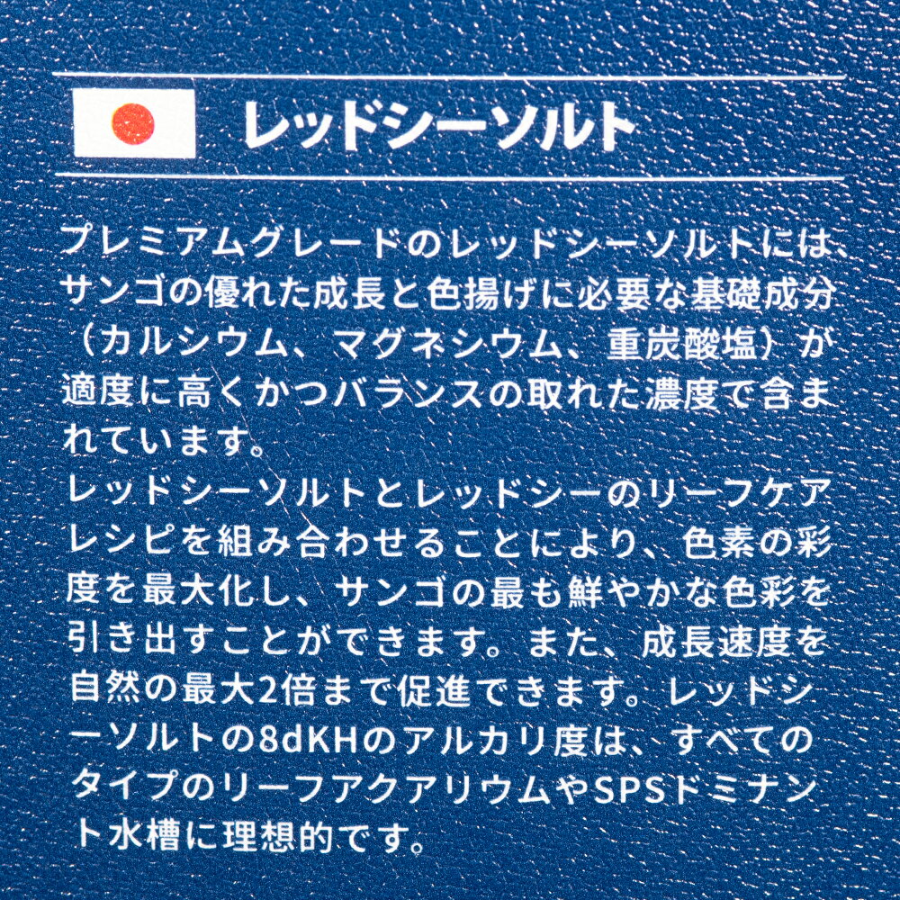 メーカー:レッドシー高品質な人工海水!人工海水 紺丸バケツ レッドシーソルト 22kg対象海水魚、ソフトコーラルなど特徴●人気の人工海水「レッドシーソルト」に、リーフアクアリウム用カラーグラス「ReefView」がついたセットです。●清浄な紅海の海水から自然で環境にやさしい製法により製造された人工海水です。●海水魚や無脊椎動物の飼育、または各添加剤を定期的に投与する低栄養塩SPS水槽に最適です。●レッドシーソルトは溶解時にサンゴ礁の海水とまったく同じパラメーターとなるよう調整されています。●30年以上にわたってアマチュアだけでなく、世界各国の専門家やブリーダーに愛用され続けています。●海水水槽は閉鎖されたシステムであるため、わずかにアルカリ度が引き上げられています。●コケの栄養となる硝酸塩とリン酸塩や、有害となる濃度の重金属、化学結合剤は含まれておりません。●よく乾燥されており、水に溶けやすくサラサラです。●レッドシー リーフケアプログラム商品との相性が良くサンゴの色揚げ、魚メインでの飼育におすすめです。●LPS・SPSの育成、特に成長を目的にご使用の場合は、別売の”コーラルプロソルト”の方が適性があります。●「ReefView」はブルー照明の影響を軽減しサンゴ本来の色彩を楽しむために開発された、リーフアクアリウム用カラーグラスです。●サンゴの色彩を浮き出させ、その美しさを観賞できます。セット内容紺丸バケツ レッドシーソルト 22kg×1ReefView×1ご使用方法【海水を作るポイント】●生体が入っている水槽内では絶対溶かさないでください。●RO水またはカルキ抜きした水を使用してください。●水30リットルに対して、1kgのレッドシーソルトを入れてください。●塩が完全に溶け、pHが8.2〜8.4で安定するまでよくかき混ぜてください。●推奨比重は1.021(水温24℃)ですが、比重は温度によって変化します。●希望の比重に近づけるときは、塩又は水を少しずつ加えて調整してください。●時間が経つにつれてコケや魚のストレスの原因となる物質が蓄積するのと、ミネラル分が生体に吸収されますので定期的な水替えを行ってください。ご注意※本品単体でのご注文の場合、箱に梱包せず本品(バケツ)に直接送り状を貼付してのご発送となります。また輸送の際取っ手が外れてしまう場合があるためフタ周辺をラップで固定した状態で発送いたしますのでご了承ください。※フタの形状が画像とは変更になっている場合がございますが、フタを開けやすくするための改良によるものです。予めご了承ください。※生体が入っている水槽に直接本品を入れないでください。※使いきれなかった場合は湿気を吸って固まらないよう、完全に密封して保管してください。※本製品が肌に触れると刺激を感じることがあります。※目に入った場合には直ちに流水で洗い流し、医師の診断を受けてください。※食品ではありませんのでお子様の手の届かないところに保管してください。※観賞魚飼育以外の目的で使用しないで下さい。※食用魚介類水槽での使用はおやめください。※本製品の使用による生体死亡等の補償はいたしません。※水中に手を入れる時は全ての電源を切ってから作業を行ってください。人工海水 紺丸バケツ レッドシーソルト 22kg 単品 海水魚 サンゴ SPS 色揚げ … 人工海水 アクアリウム用品 redseabaketsalt 海水 人工 天然海水 レッドシー redseasalt レッドシーソルト new_redseasalt 海水生体 レッドシーフィッシュ kaisuikiguredseafish _aqua a_seawater 7290100771990 redsea 人工海水 紺丸バケツ レッドシーソルト ReefView付き 22kg 青バケツ 海水魚 塩 マリンアクアリウム 水換え サンゴ LPS リーフケアプログラム 紺丸バケツ kyousei0325 20250401 y25m04 kak■この商品をお買い上げのお客様は、下記商品もお買い上げです。※この商品には付属しません。■人工海水 紺丸バケツ レッドシーソルト 22kg 単品 海水魚 サンゴ SPS 色揚げ