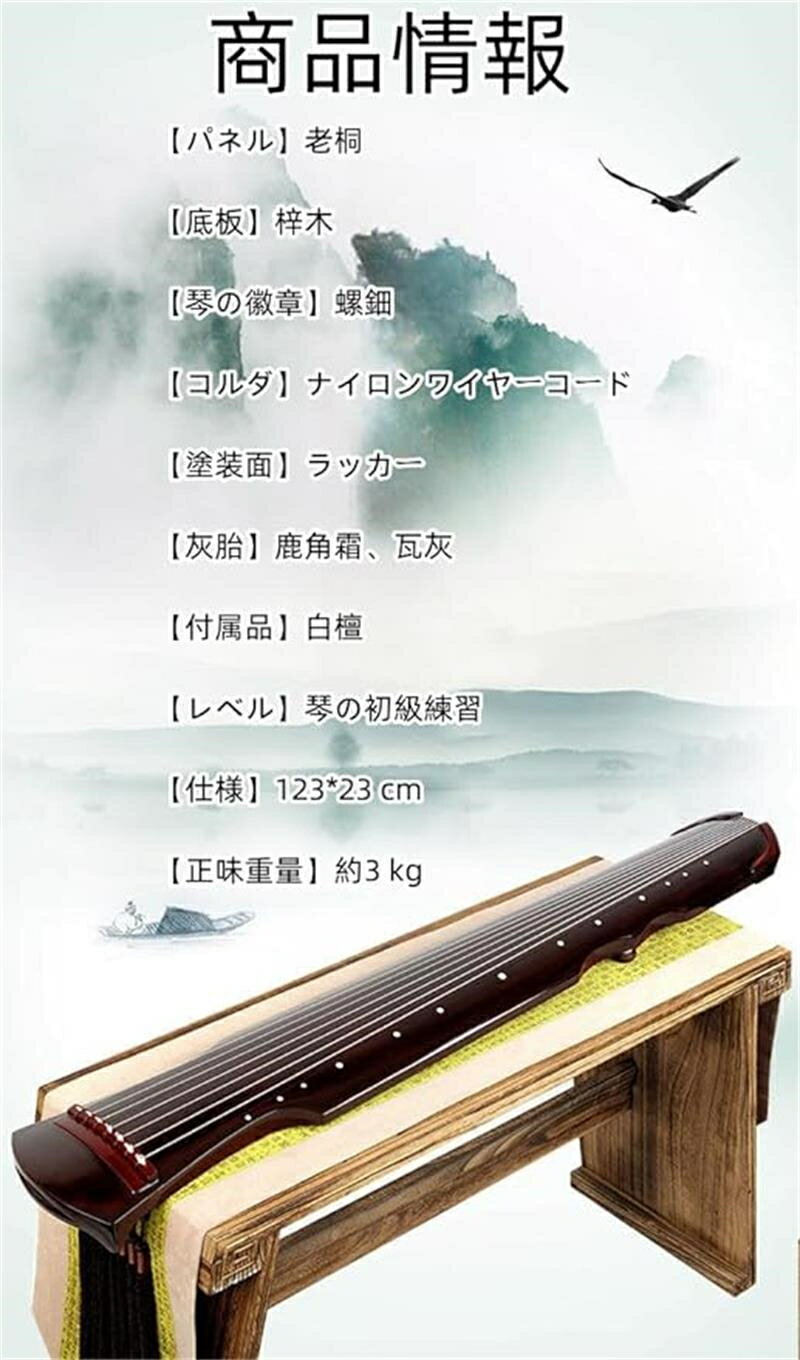 弦楽器セット 古箏 古琴 中国の古琴 老桐ギ材 七弦琴 伏羲琴 中国古箏入門レベルの古い桐7弦古琴 天然生漆手作りピアノ初心者が練習して付属品のフルセットを送るのに適しています 大人のための適切な 子供 学生初心者で古筝フィンガートレーナー