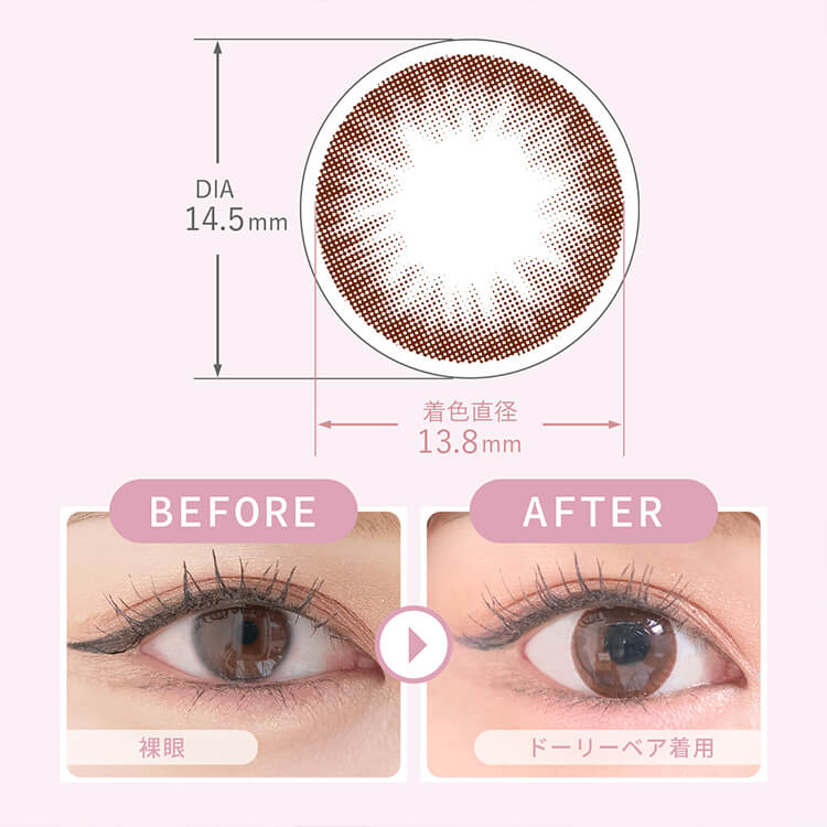 ミキュアムMieQaM【ドーリーベアの商品ページ】 ●内容量 1箱10枚入 ●配送について こちらの商品はメーカー取り寄せ品となります。ご入金確認後、メーカーより取り寄せ致しますので、発送までに2〜5営業日程かかります。※金曜日・祝前日の午前10時以降のご注文は週明けの発注となるため、7営業日程かかる場合がございます。 欠品につきましては必ず【欠品表】をご確認ください。記載がない場合でもメーカー側で一時欠品となる場合がございます。その際は別途メール案内しておりますのでご確認おねがいいたします。 ※実際の商品の色になるべく近いかたちで掲載しておりますが、モニターの違いなどで実際の商品と色味が異なる場合がございます。予めご了承ください。 ※処方箋不要でご購入いただけますが、必ずかかりつけの眼科を受診しご自身に合ったコンタクトをご使用ください。 こちらの商品は2箱以上ご購入いただくと送料無料となります。(1箱の場合は送料が掛かります) ●商品ポイント 黒崎みさプロデュースのナチュラルカラコンが遂にデビュー! ファッションブランドMieQaMから誕生したカラコンはナチュラルで、 アパレルブランドの世界観そのままなガーリーでキュートなレンズに仕上がっています◎ さらにパッケージデザインは城咲ロンドンさんが担当し、夢かわいいポップな女の子のイラストがかわいい! 思わずパケ買いしてしまうほど女の子心をくすぐるアイテムとなっています♪ ●カラー 1.プリンセスうさぎ直径14.2mm/着色直径13.5mm透明感とオリーブカラーで抜け感が抜群! 2.ぱっちりにゃんこ直径14.2mm/着色直径13.5mm馴染みやすいブラックのフチと柔らかいブラウンで写真盛れ♪ 3.ちゅるんわんこ直径14.5mm/着色直径13.8mm強めブラウンと優しいブラックをミックスしてうるうるな目元に! 4.ドーリーベア直径14.5mm/着色直径13.8mm王道ブラウンでドールのようなくりっとEYEに! ●検索タグ #直径14.2mm #直径14.5mm #着色直径13.5mm #着色直径13.8mm #BC8.6mm #黒崎みさ #ナチュラル #低含水 #キャバ嬢 #初心者OK #小悪魔 #ドール系 #小動物系 #キラキラ #モテ系 #愛され系 #うるうる ●使用期間(開封後) 1日使い捨て ●直径 14.2mm/14.5mm ●着色直径 13.5mm/13.8mm ●ベースカーブ 8.6mm ●含水率 38.5% ●度数 ±0.00(度なし)-0.75〜-5.00(-0.25STEP)-5.50〜-8.00(-0.5STEP) ●医療機器承認番号 22900BZX00293000 ●製造国 韓国 ●販売元 ギフト・アンド・カンパニ株式会社 ●販売名 ハイジェニック1day ●製造販売元 株式会社intervia ●広告文責 株式会社サンシティ(シェリーココ楽天市場店)TEL:06-7651-8887※当店は高度管理医療機器販売許可店です。 許可番号 第19N00160号 ●区分 高度管理医療機器ミキュアムMieQaM【ドーリーベアの商品ページ】 ●内容量 1箱10枚入 ●配送について こちらの商品はメーカー取り寄せ品となります。ご入金確認後、メーカーより取り寄せ致しますので、発送までに2〜5営業日程かかります。※金曜日・祝前日の午前10時以降のご注文は週明けの発注となるため、7営業日程かかる場合がございます。 欠品につきましては必ず【欠品表】をご確認ください。記載がない場合でもメーカー側で一時欠品となる場合がございます。その際は別途メール案内しておりますのでご確認おねがいいたします。 ※実際の商品の色になるべく近いかたちで掲載しておりますが、モニターの違いなどで実際の商品と色味が異なる場合がございます。予めご了承ください。 ※処方箋不要でご購入いただけますが、必ずかかりつけの眼科を受診しご自身に合ったコンタクトをご使用ください。 こちらの商品は2箱以上ご購入いただくと送料無料となります。(1箱の場合は送料が掛かります) ●商品ポイント 黒崎みさプロデュースのナチュラルカラコンが遂にデビュー! ファッションブランドMieQaMから誕生したカラコンはナチュラルで、 アパレルブランドの世界観そのままなガーリーでキュートなレンズに仕上がっています◎ さらにパッケージデザインは城咲ロンドンさんが担当し、夢かわいいポップな女の子のイラストがかわいい! 思わずパケ買いしてしまうほど女の子心をくすぐるアイテムとなっています♪ ●カラー 1.プリンセスうさぎ直径14.2mm/着色直径13.5mm透明感とオリーブカラーで抜け感が抜群! 2.ぱっちりにゃんこ直径14.2mm/着色直径13.5mm馴染みやすいブラックのフチと柔らかいブラウンで写真盛れ♪ 3.ちゅるんわんこ直径14.5mm/着色直径13.8mm強めブラウンと優しいブラックをミックスしてうるうるな目元に! 4.ドーリーベア直径14.5mm/着色直径13.8mm王道ブラウンでドールのようなくりっとEYEに! ●検索タグ #直径14.2mm #直径14.5mm #着色直径13.5mm #着色直径13.8mm #BC8.6mm #黒崎みさ #ナチュラル #低含水 #キャバ嬢 #初心者OK #小悪魔 #ドール系 #小動物系 #キラキラ #モテ系 #愛され系 #うるうる ●使用期間(開封後) 1日使い捨て ●直径 14.2mm/14.5mm ●着色直径 13.5mm/13.8mm ●ベースカーブ 8.6mm ●含水率 38.5% ●度数 ±0.00(度なし)-0.75〜-5.00(-0.25STEP)-5.50〜-8.00(-0.5STEP) ●医療機器承認番