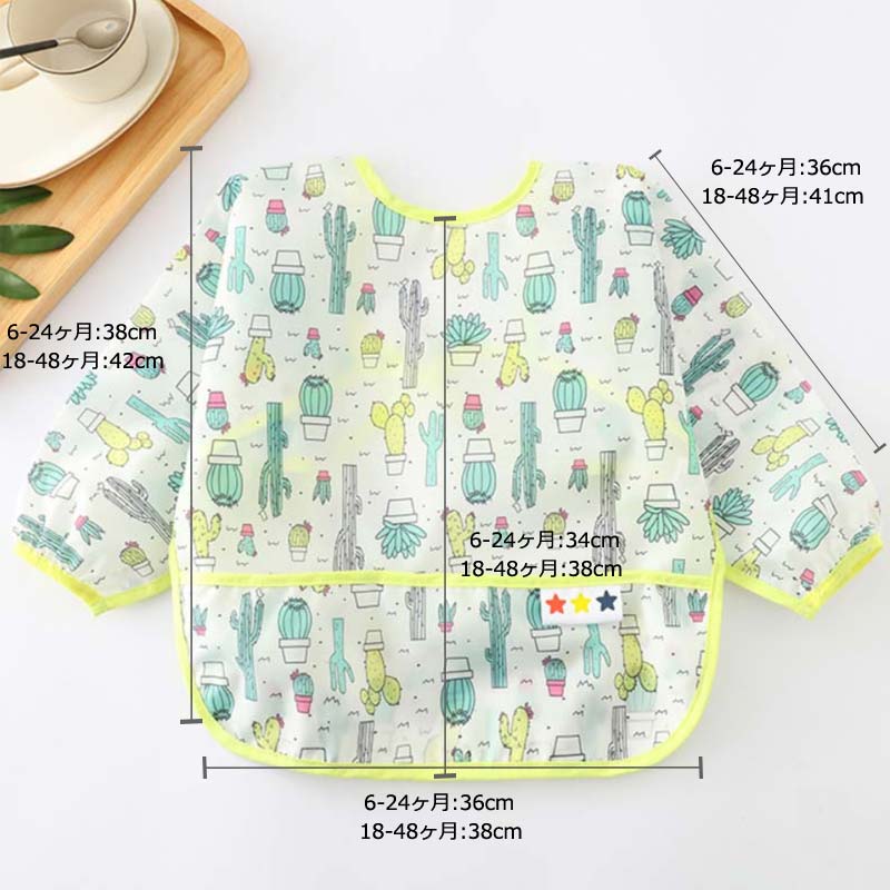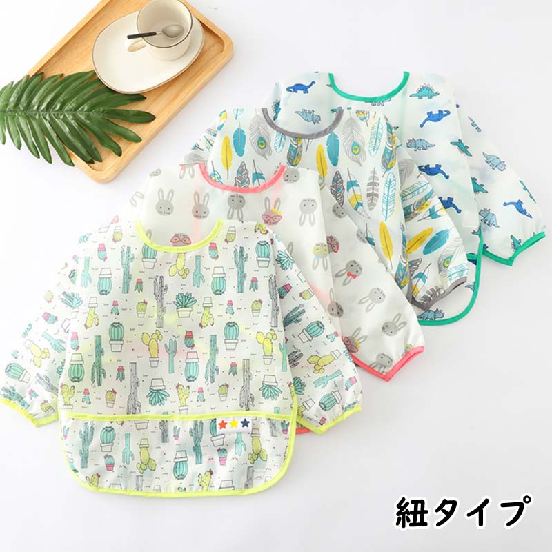 お食事用エプロン 長袖 赤ちゃん 紐タイプ ポケット付 長袖 食べこぼしガード 長袖タイプ 防水食事用エプロン 新生児 子供用 幼児 スタイ ベビーエプロン 赤ちゃん ベビー用品