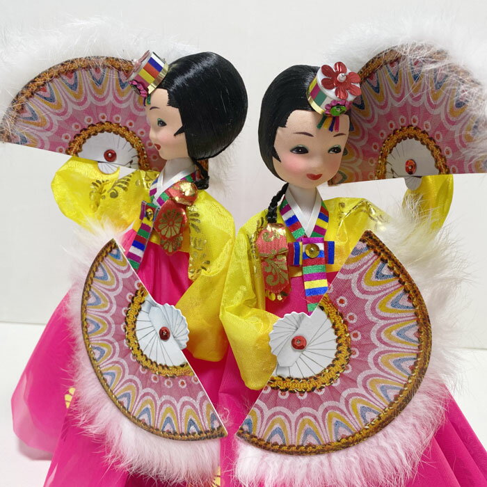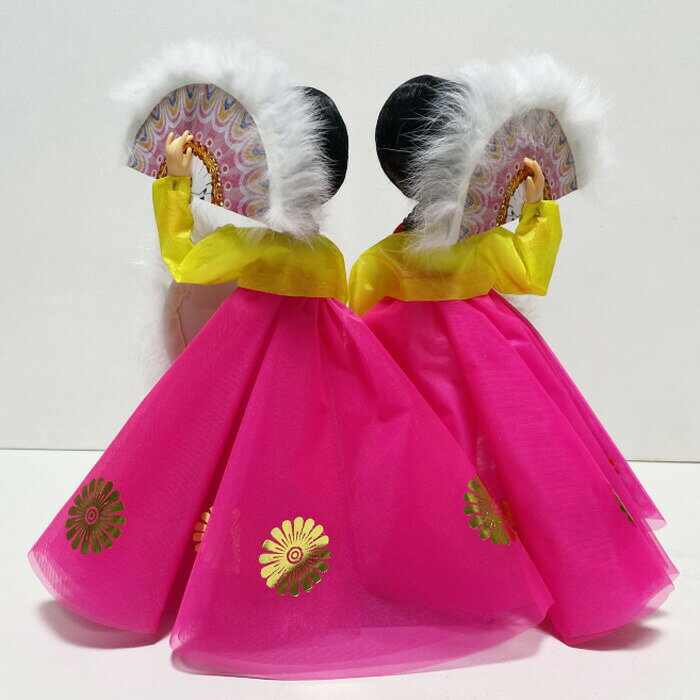 韓国人形・双舞×ピンク 韓国伝統衣装の本格韓国人形 韓国舞踊 扇子の舞い■doll-d96-s【韓国】【人形】【舞踊】【韓服】【コレクション】【チマチョゴリ 】【ピンク】