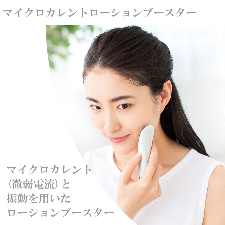 マイクロカレント(微弱電流)と振動を用いたローションブースター 【汚れ落としモード】と 【浸透モード】の2つのモードを搭載 微弱電流が化粧水や美容液を効率よく浸透させます 【サイズ】 本体寸法:約32(W)×136(H)×28(D)mm 【重量】 約67g(電池含まず) 【アタッチメントタイプ】 回転式 【電源】 単4形アルカリ乾電池×1本(別売)) 【動作モード】 汚れ落としモード→浸透モード 【主な材質】 ABS 【カラー】 ピンク ホワイト