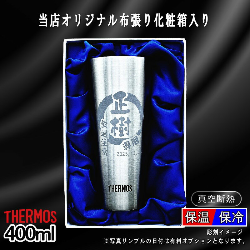 【化粧箱入り】名入れ タンブラー サーモス 名前入り プレゼント 真空断熱 保温 保冷 ステンレス 彫刻 刻印 グラス コップ おしゃれ ビールグラス 父の日 母の日 還暦祝い 退職 誕生日 実用的 ネーム入れ 男性 女性 バースデー ギフト 送料無料 400ml JDI-400 円背景 EH31